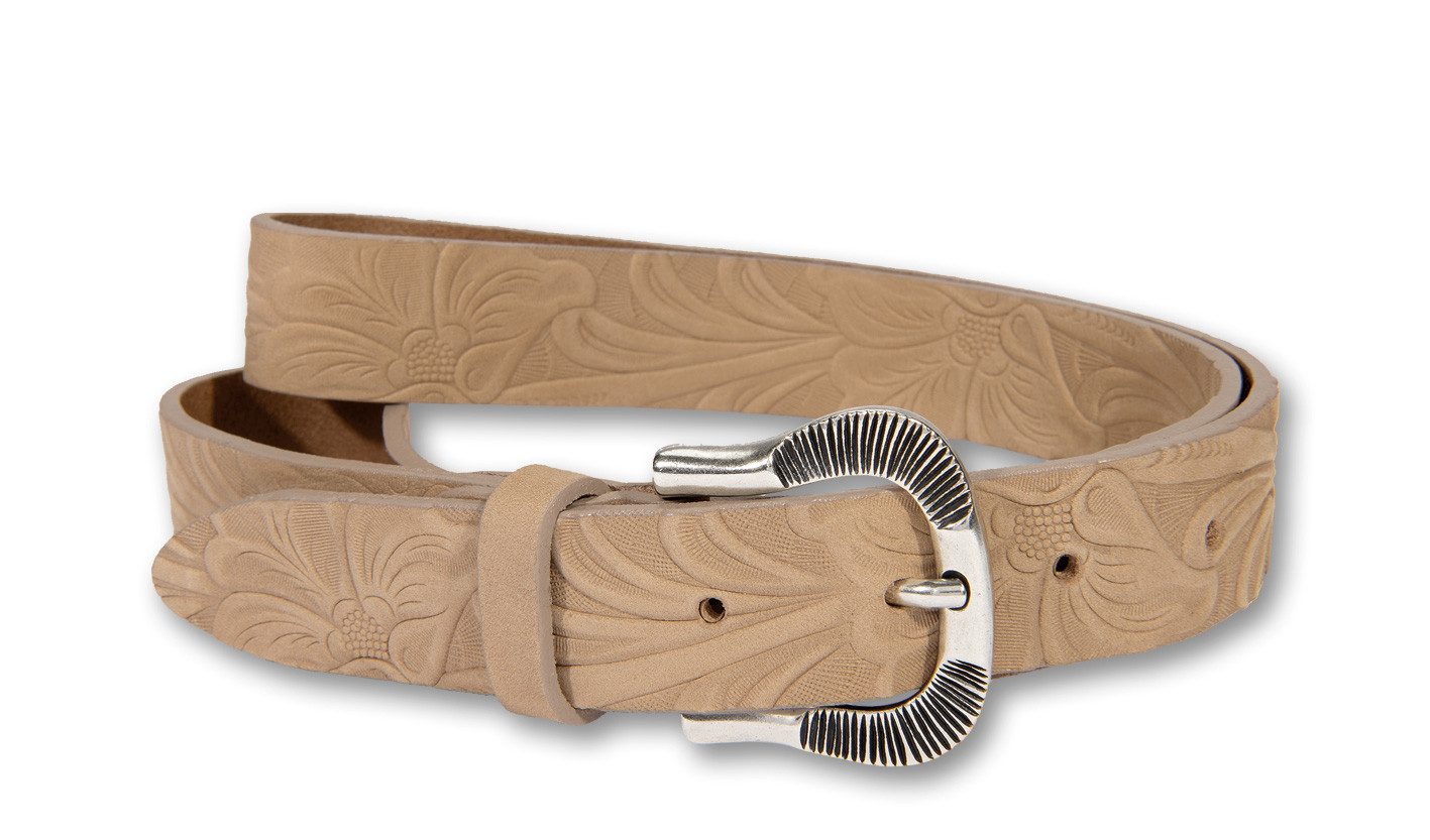 - Leren riem Met gebloemde stempeldrukSilbergiftHuidige prijs€ 39,95