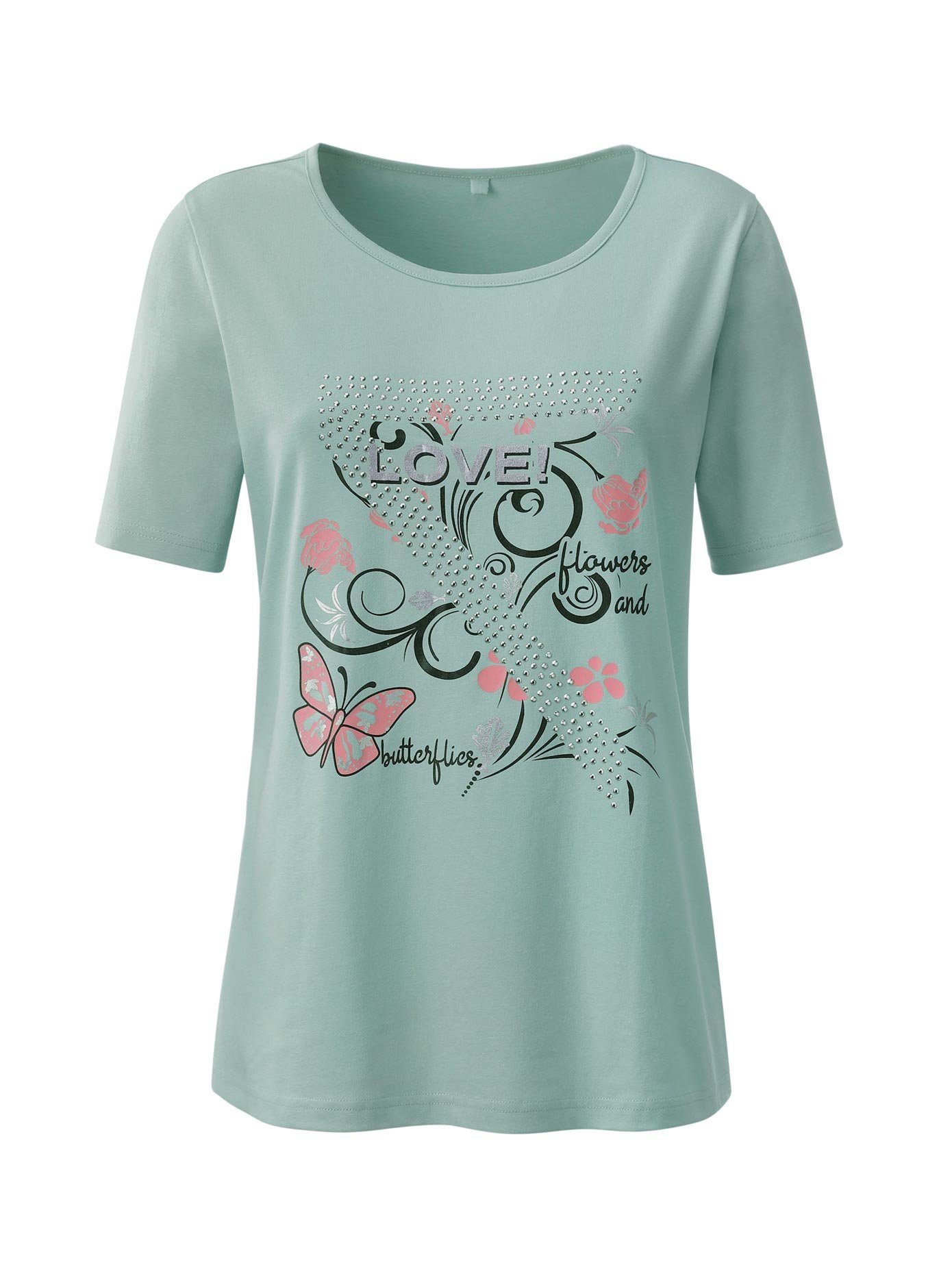 Dit shirt is voorzien van vlinders en een beetje glitter. Lengte ca. 66 cm. 100% katoen. Machinewas.