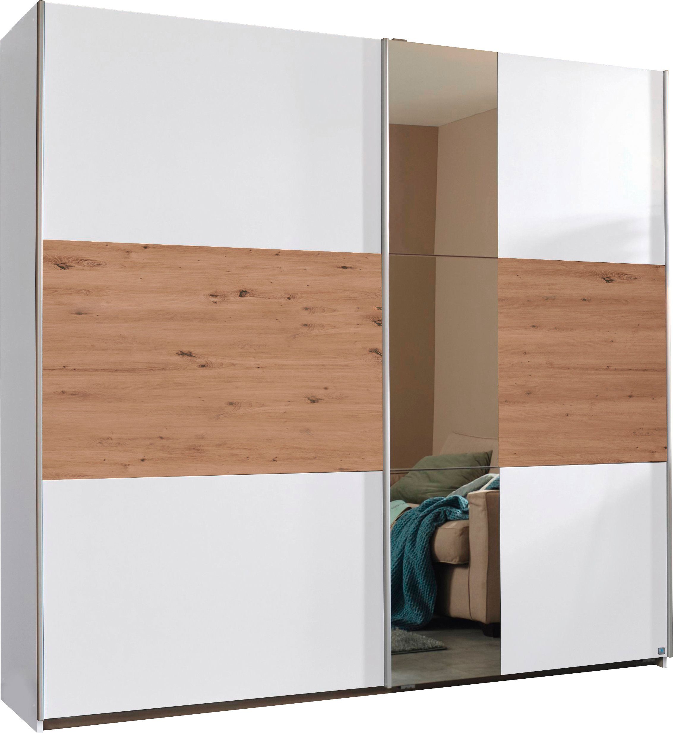 rauch Zweefdeurkast Kledingkast kast garderobe ASTANA met soepel lopende deuren inclusief 2 stoffen dozen en metalen grepen topseller made in germany