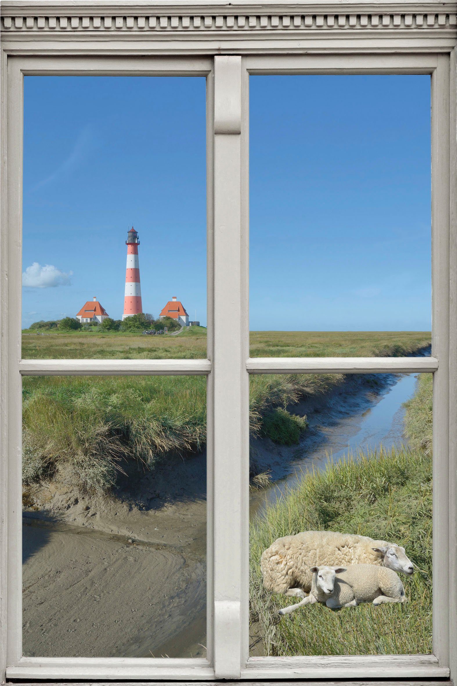 queence Wandfolie Schapen en vuurtoren Muursticker, muurdecoratie, zelfklevend, 3D, raam