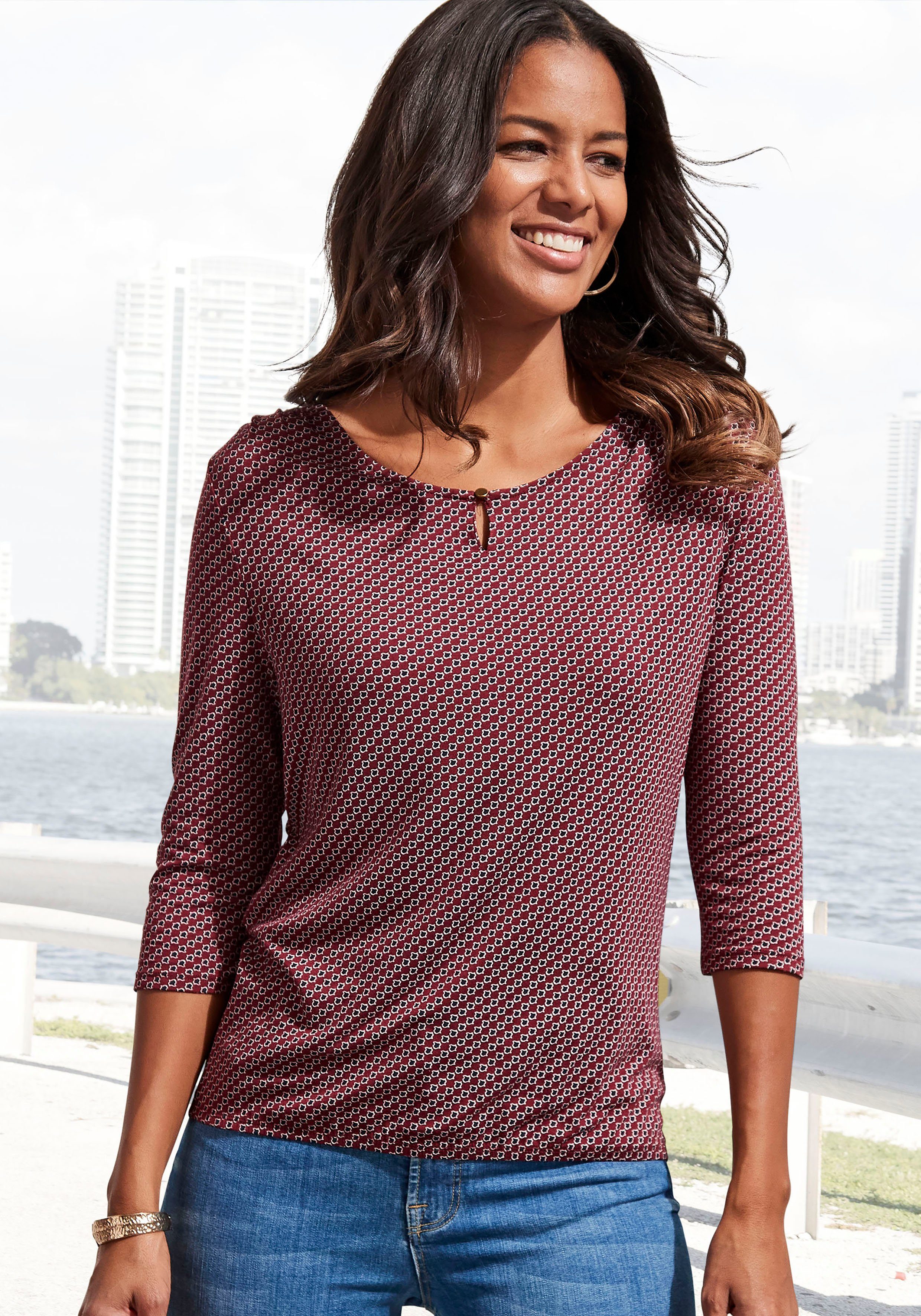 Vivance Shirt met ronde hals Met goudkleurige sierknop bij de hals