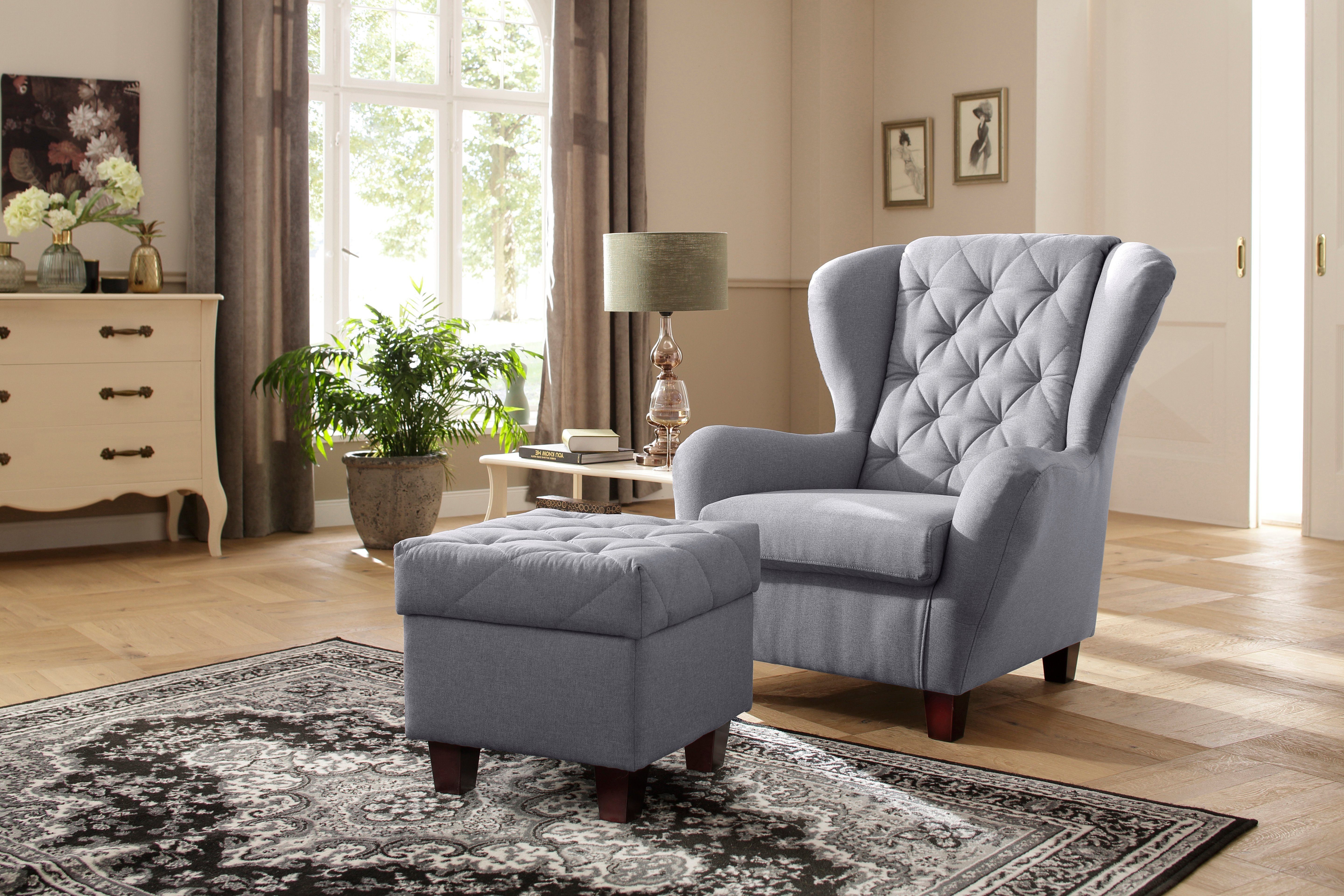 Home affaire Oorfauteuil ALEXANDRA incl. hocker, met stiksels, in vele kleuren (2-delig - 2 stuks)