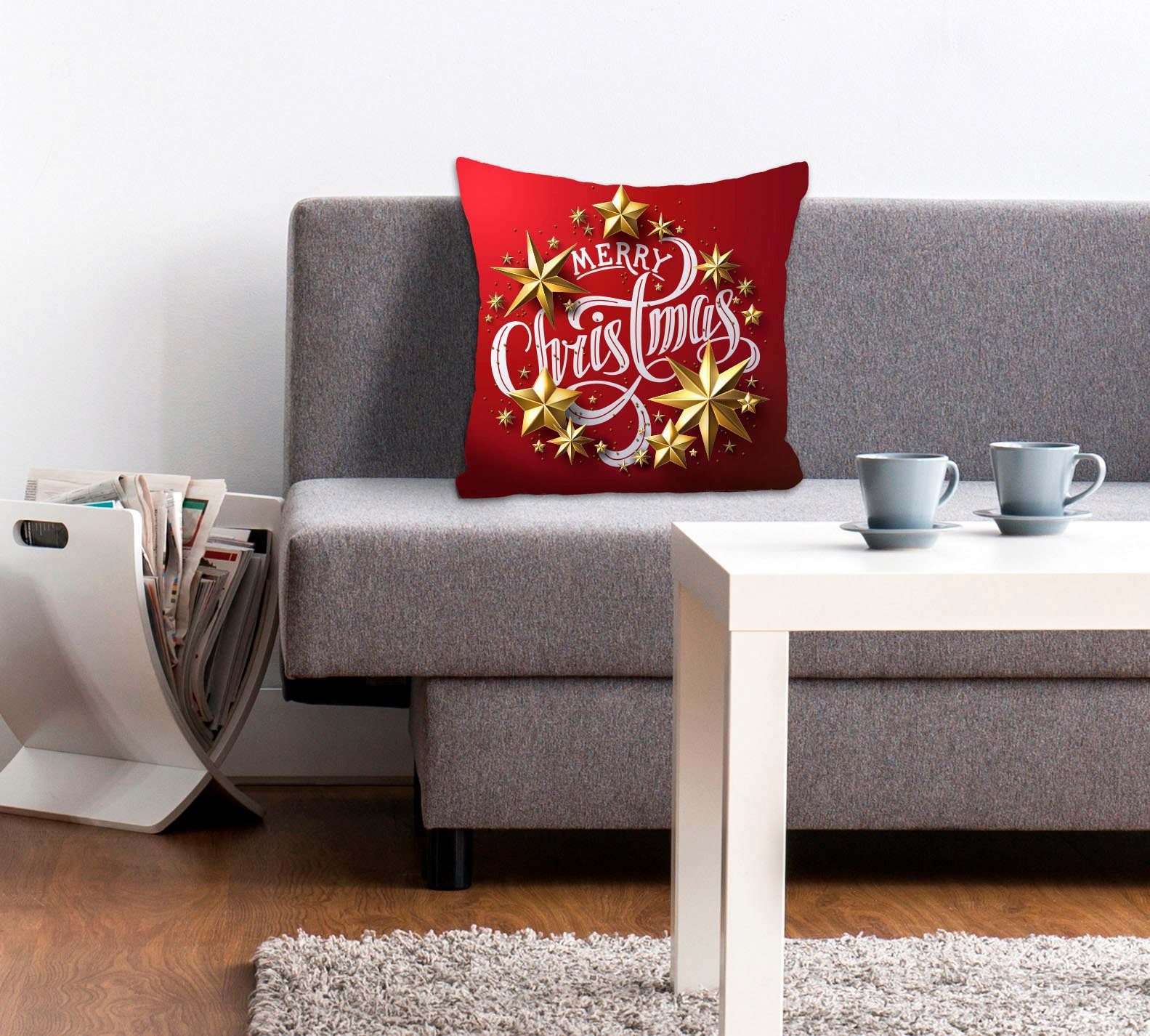 queence Sierkussen Stars Kussenhoes, Vrolijk Kerstfeest, rood, kerst, feestelijk, uitspraak (1 stuk)