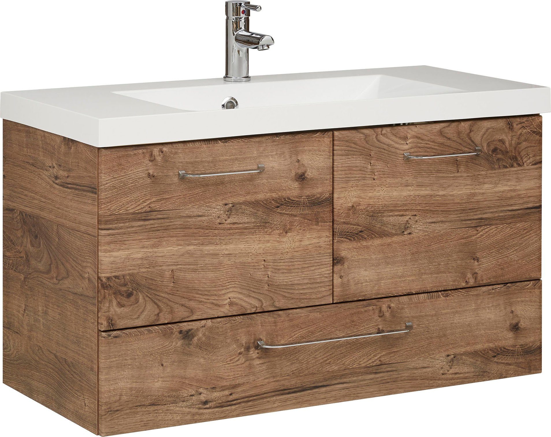 Saphir Wastafelonderkast Quickset mineralenmarmer wastafel met onderkast, 99 cm breed Wastafelmeubel, grepen glanzend chroom, inclusief deurdemper, 2 deuren, 1 lade