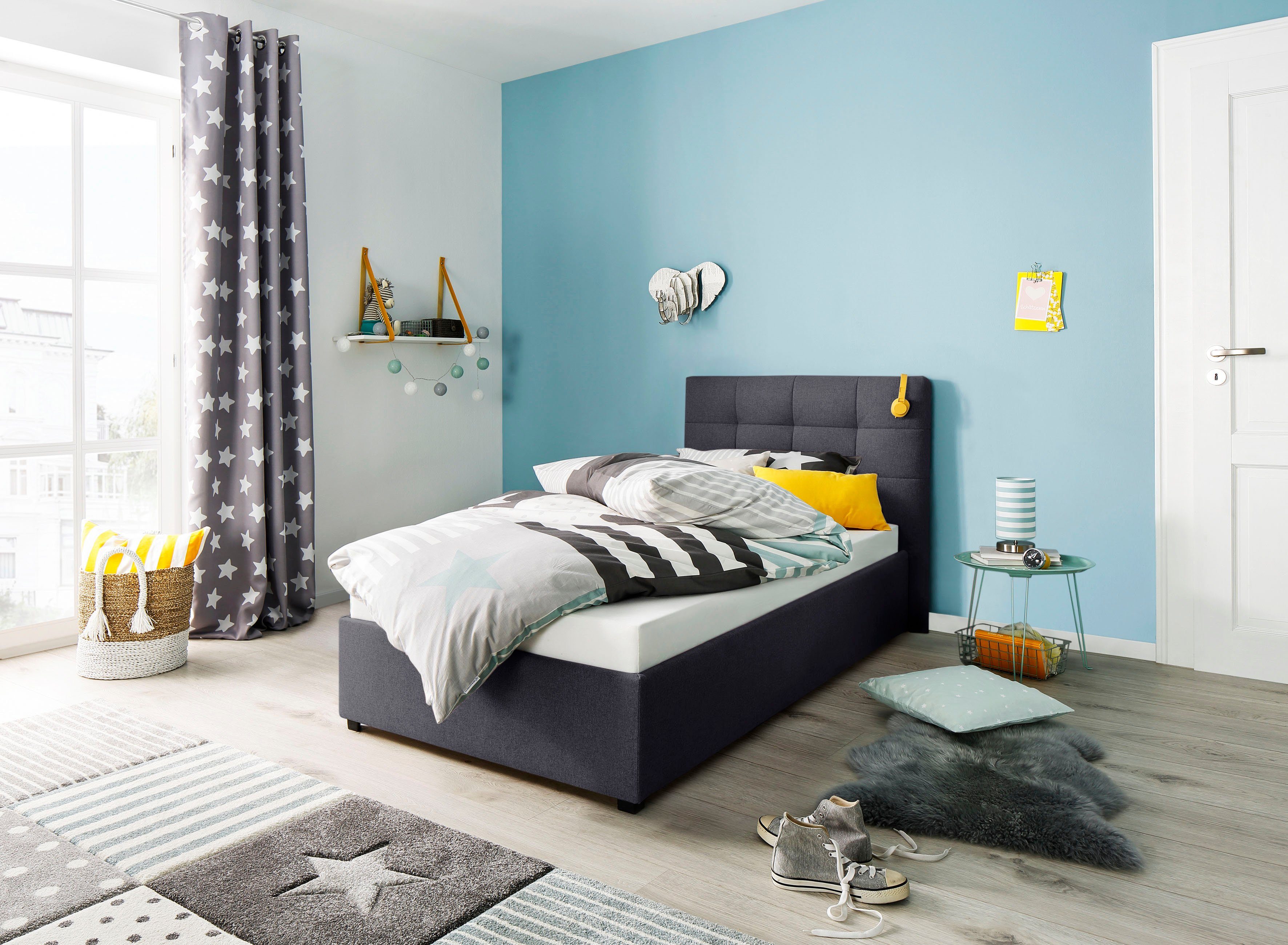 Lüttenhütt Gestoffeerd bed Endres met bedkist, naar keuze zonder matras/lattenbodem of incl. matras