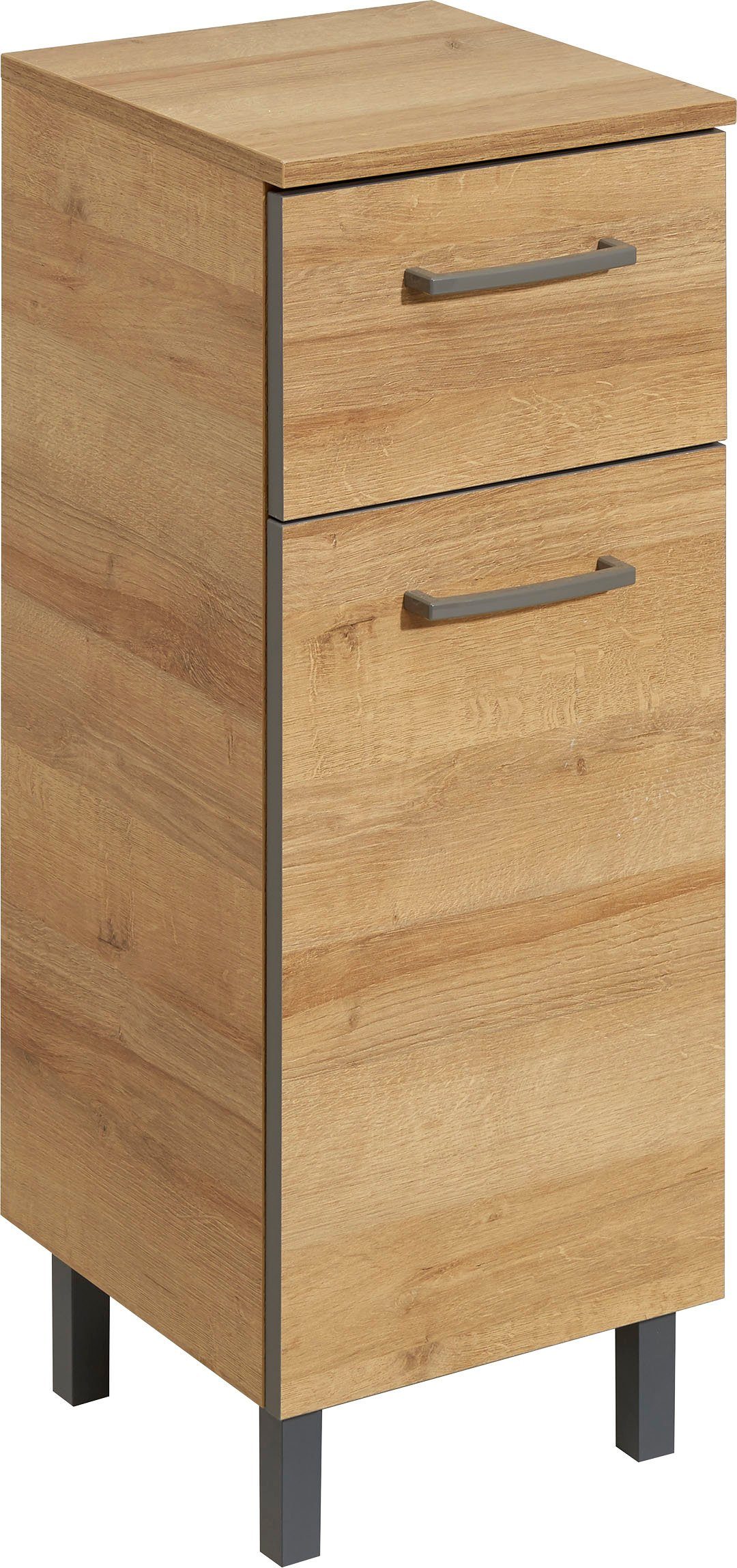 Saphir Onderkast Quickset 919 badkast met 1 deur, 1 lade, 30 cm breed Badkamermeubels, Riviera eik dwars imitatie, grepen in grijs