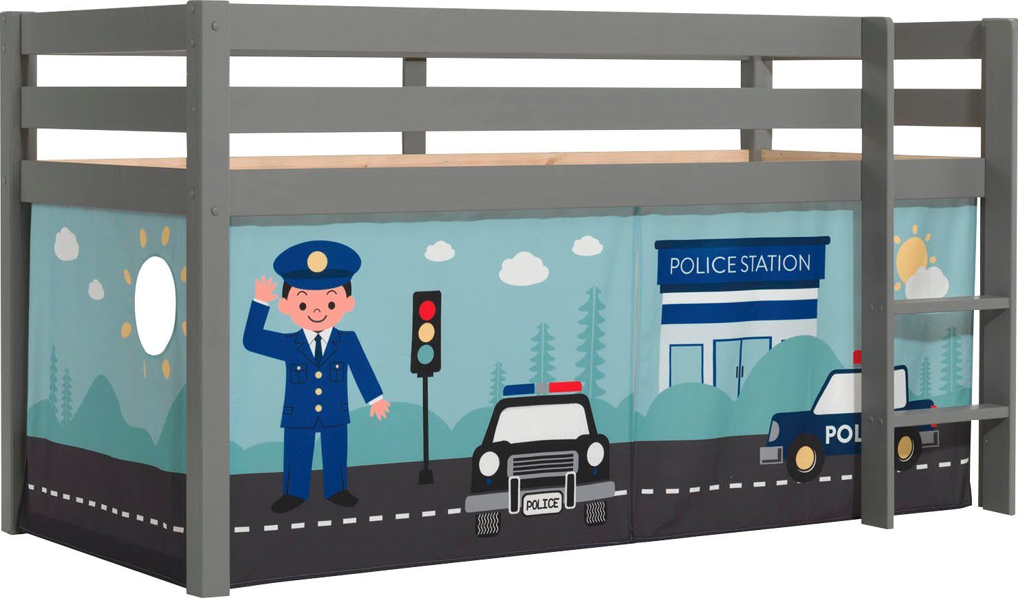 Vipack Speelbed Pino, massief dennenhout, met lattenbodem en textielset, gemaakt in Europa