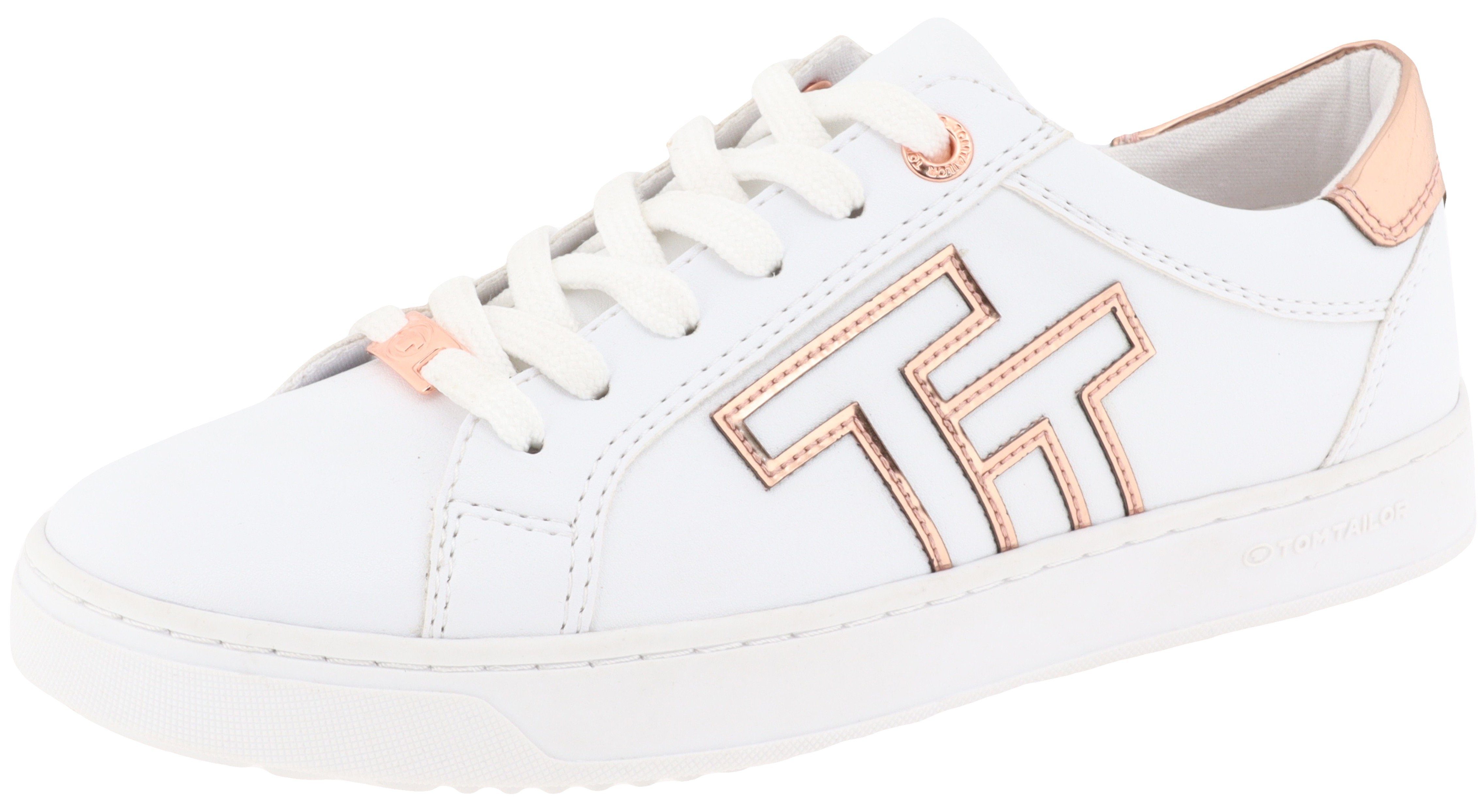 Tom Tailor Plateausneakers Contrastafwerking in metalliclook, vrijetijdsschoen, lage schoen, veterschoen
