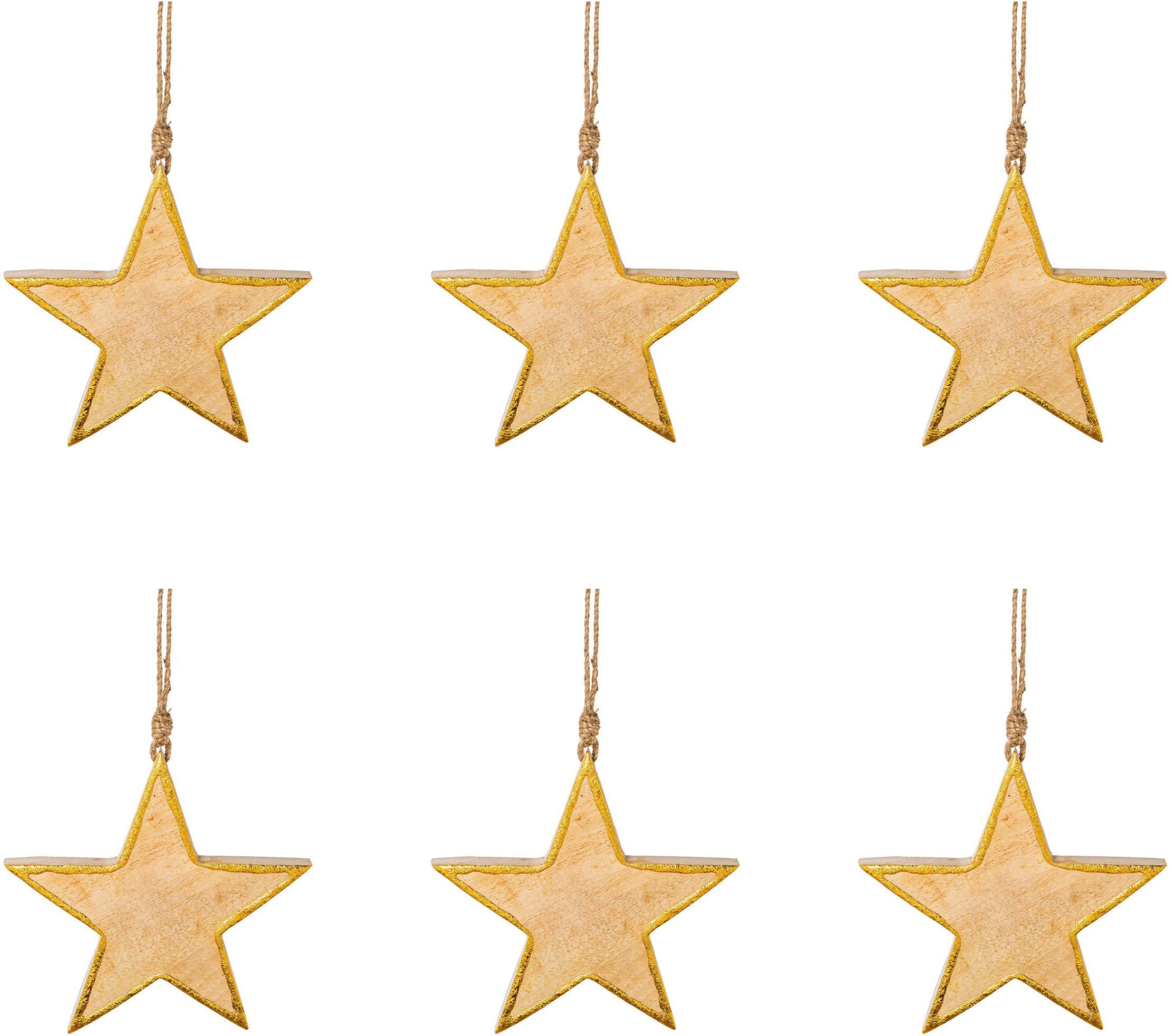 Creativ deco Sierster van hout, hangdecoratie, 6-delige set, ø ca. 15 cm (6 stuks)