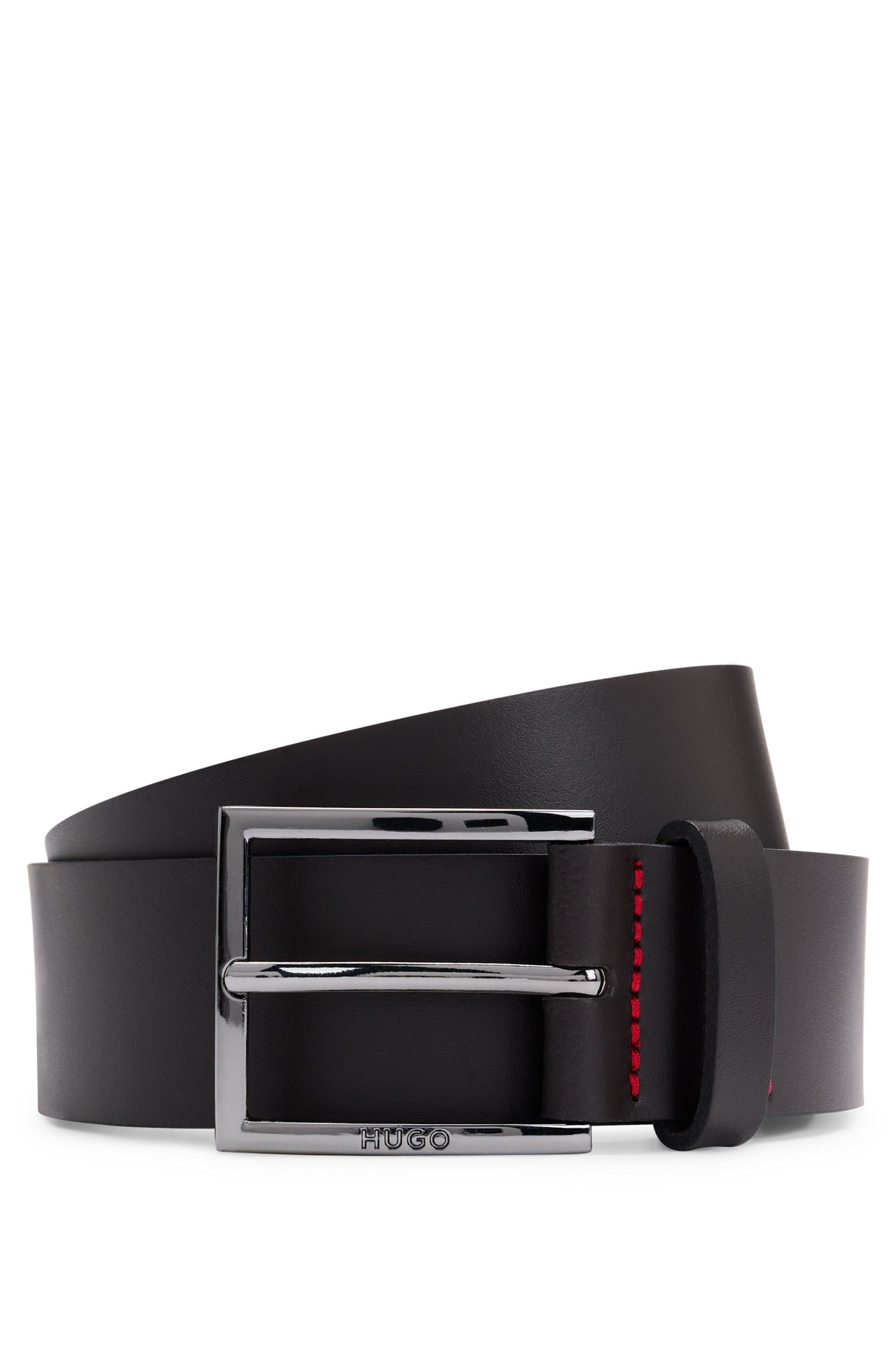 HUGO Leren riem Geek_Sz35 met contrasterende naden en subtiele metalen sluiting