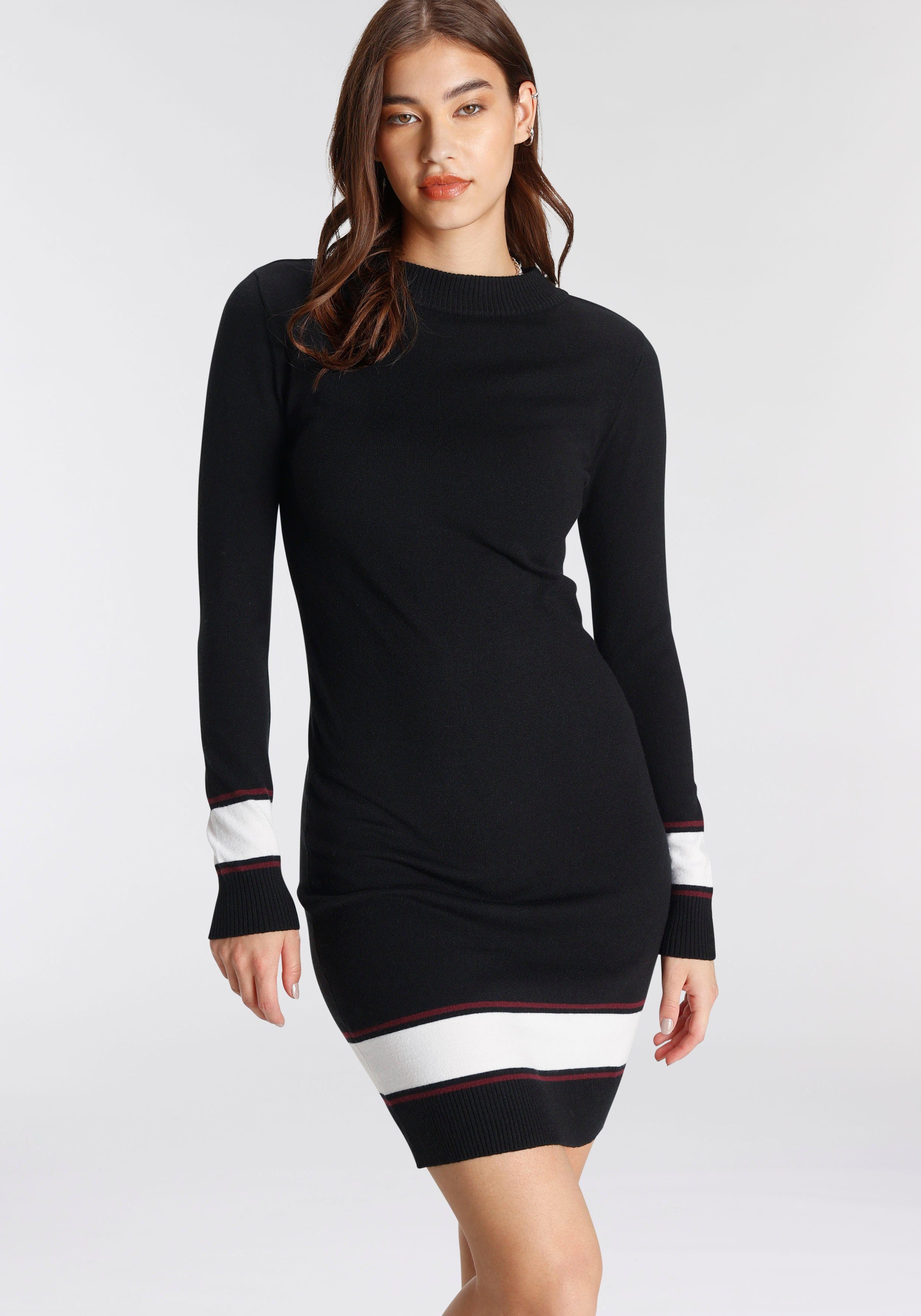 AJC Gebreide jurk met contraststrepen van zachte viscosemix