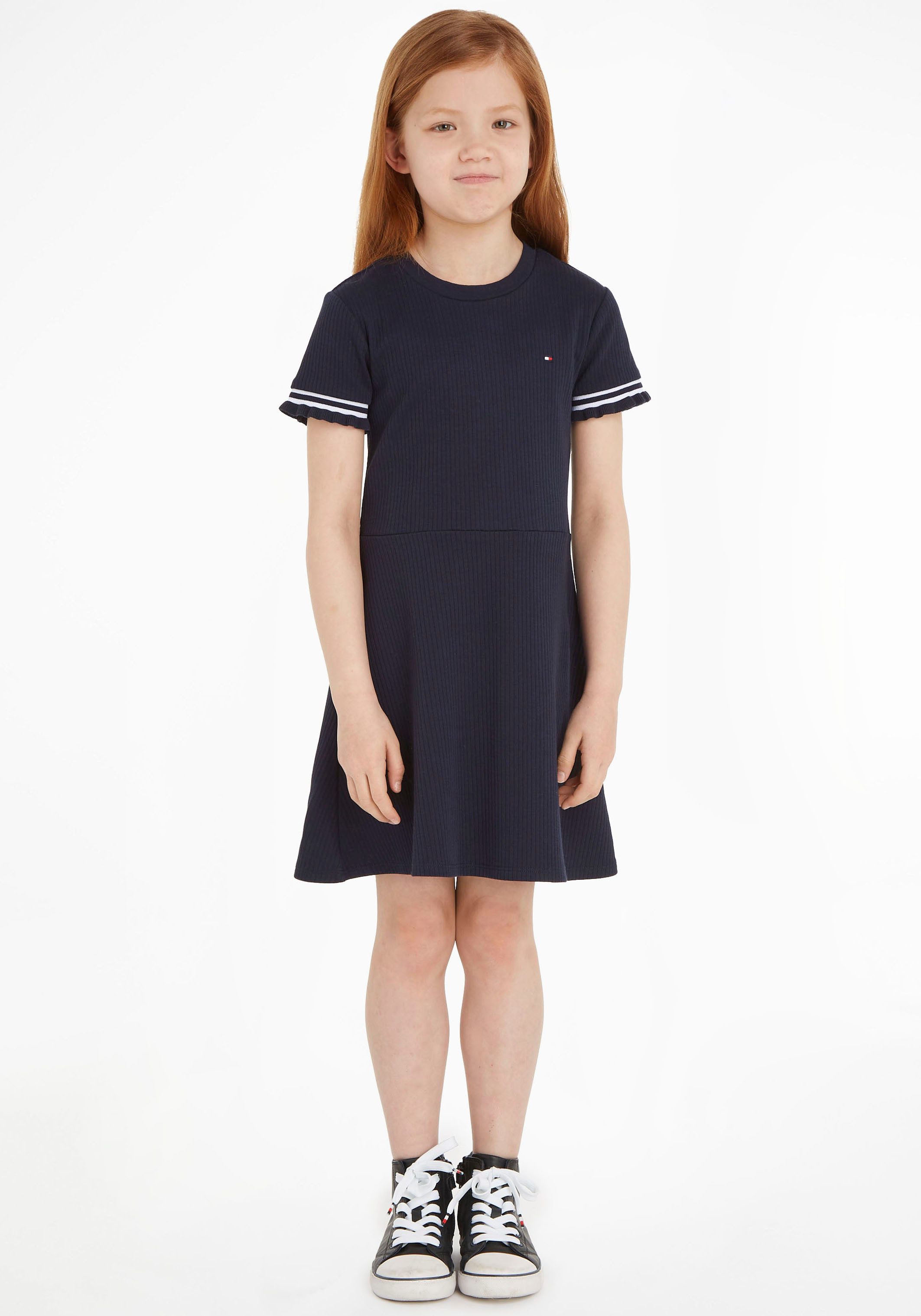 Tommy Hilfiger Jerseyjurk RUFFLE RIB KNIT DRESS Skatervorm, met ribstructuur