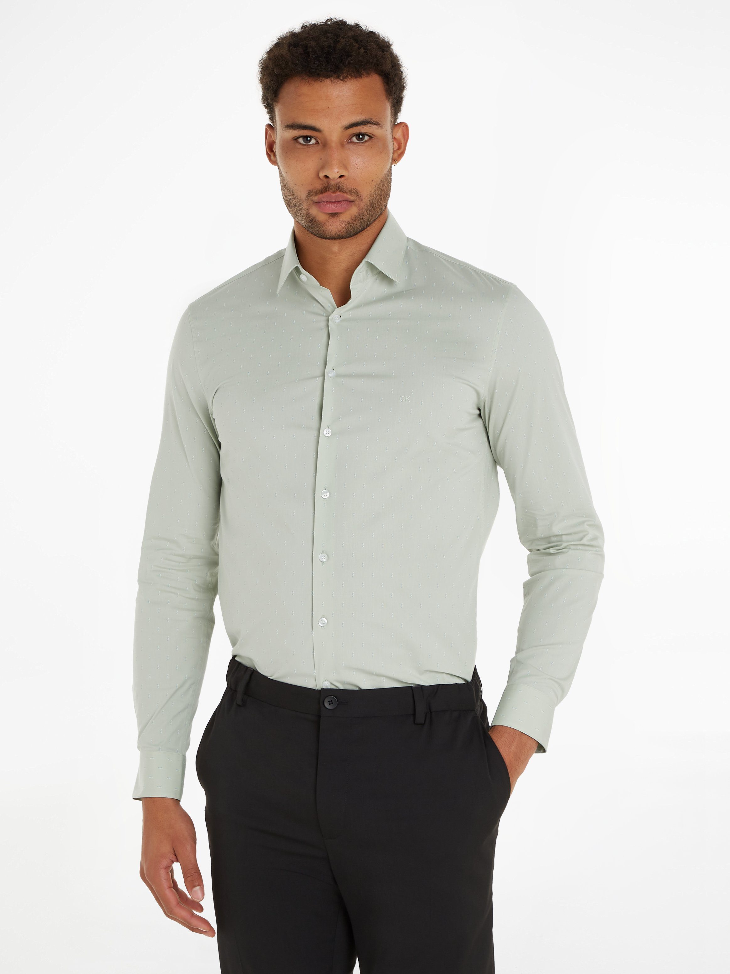 Calvin Klein Overhemd met lange mouwen POPLIN LEAF PRINT SLIM SHIRT