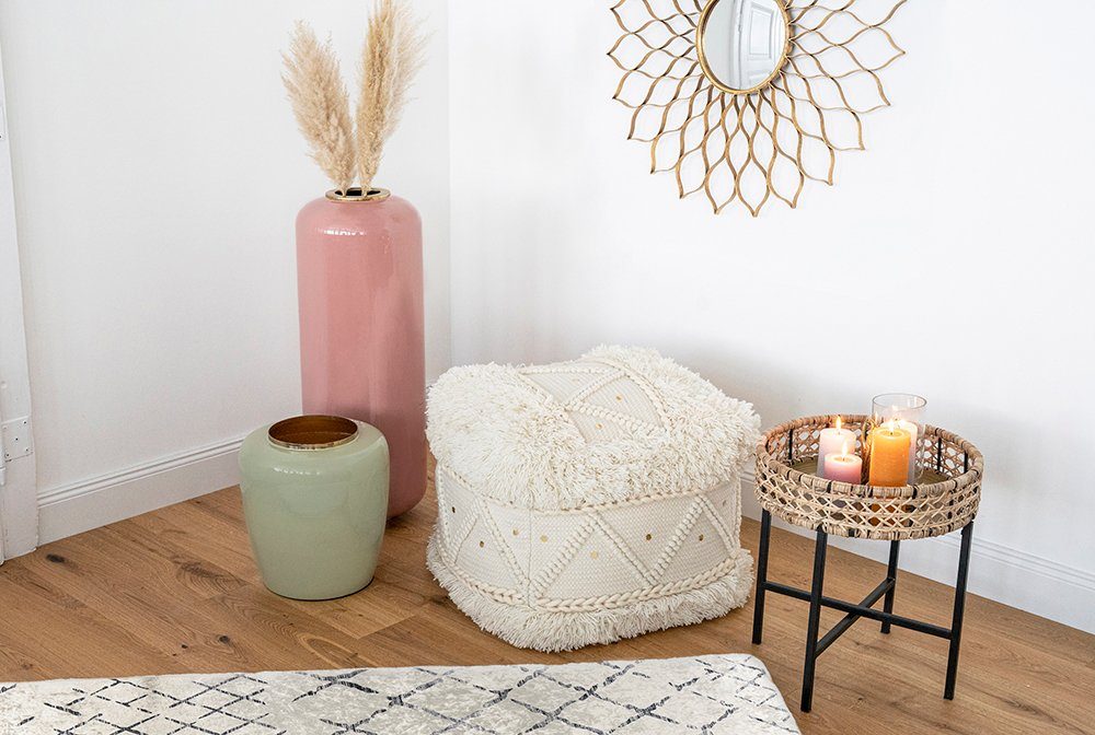 Kayoom Poef Bohist 525 50cm x 50cm, Structuren met franjes en kwasten handgemaakt, uniek, zeer goed te combineren, veelzijdig in gebruik (1 stuk)