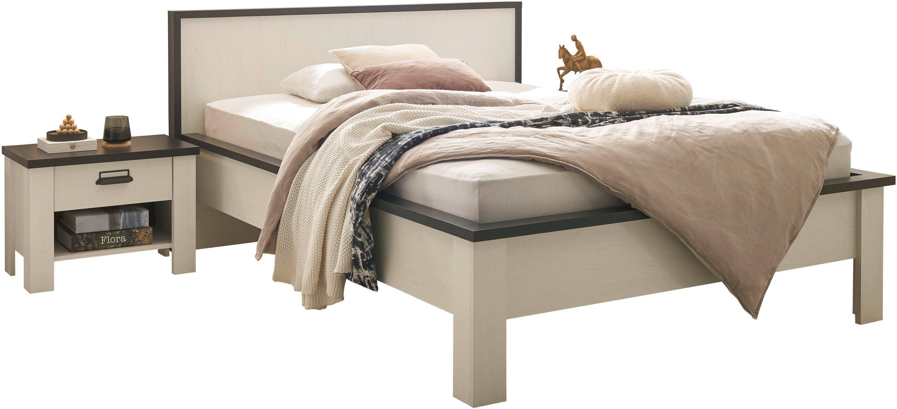 Home affaire Ledikant Sherwood Ligoppervlak 140 x 200 cm, 2 nachtkastjes met elk 1 lade (3-delig)