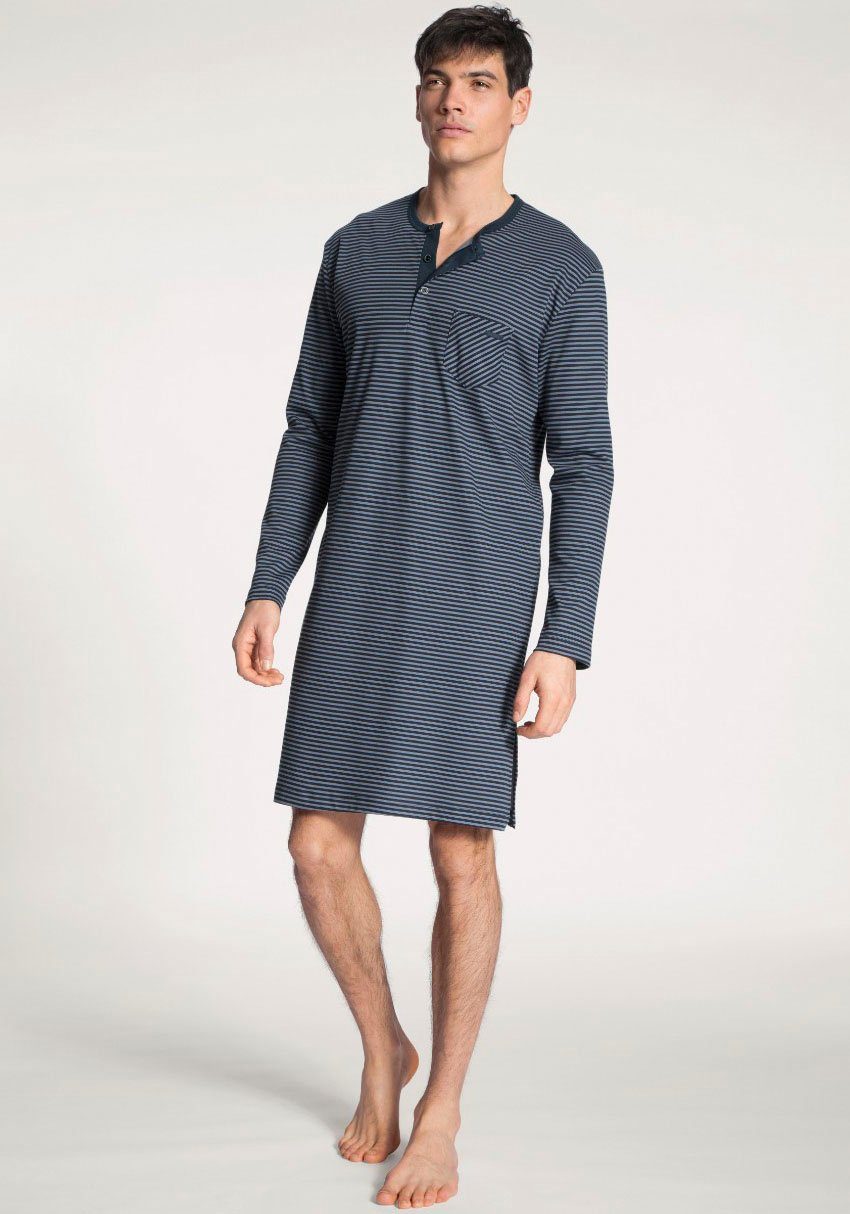 CALIDA Nachthemd Relax Streamline zijdelingse splitjes, interlock-kwaliteit, lange mouw, knoopsluiting