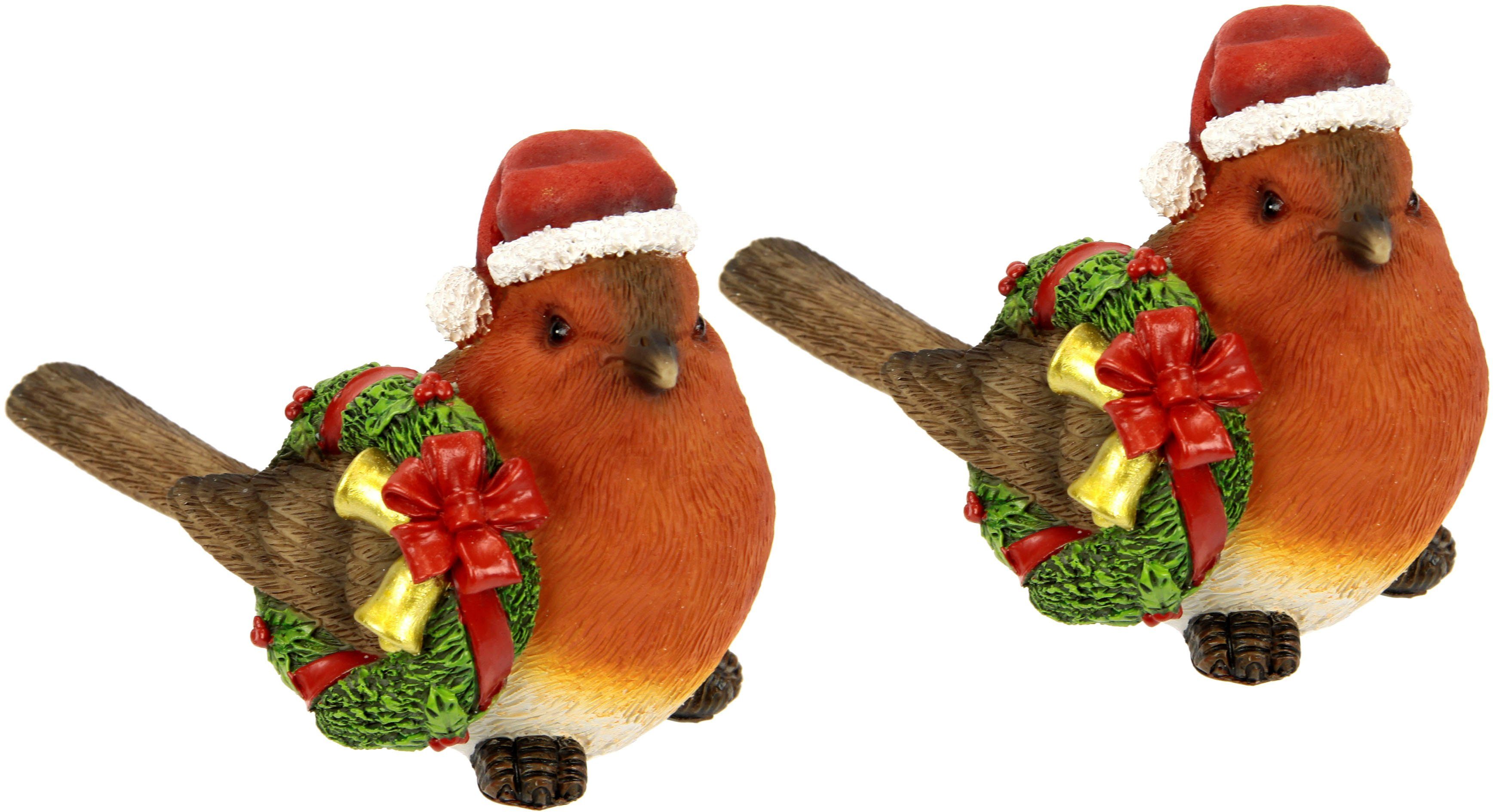 I.GE.A. Kerstfiguur Kerstvogel met krans en muts, 2-pack, hoogte ca. 10 cm Decoratiefiguur van polyresin, kerstdecoratie, dierenfiguur (set, 2 stuks)