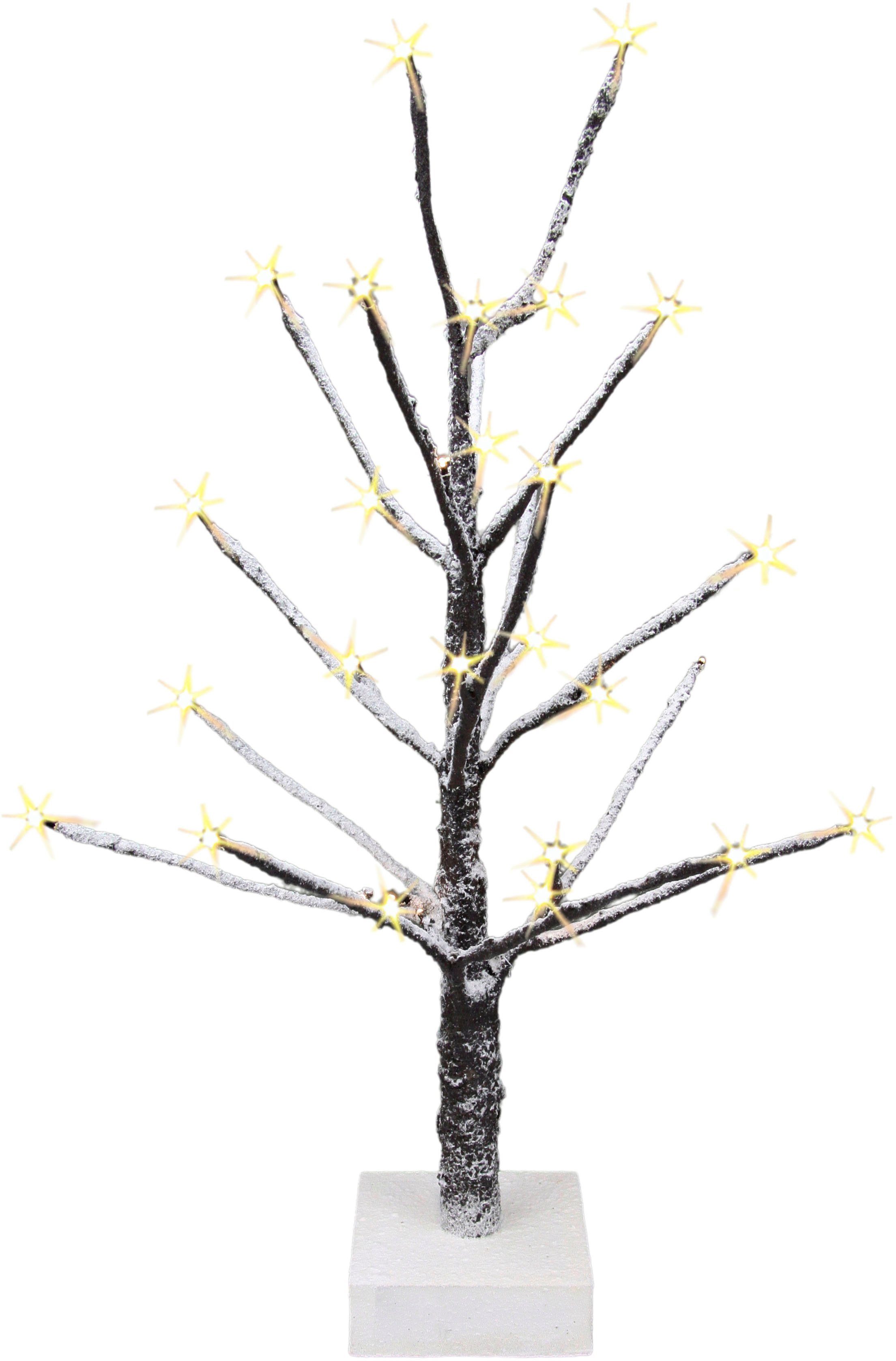 I.GE.A. Deco-boom Kunstmatige kerstboom, kunstboom, kerstdecoratie met kunstsneeuw en led verlichting op houten voet, bruin, hoogte ca. 65 cm (1 stuk)