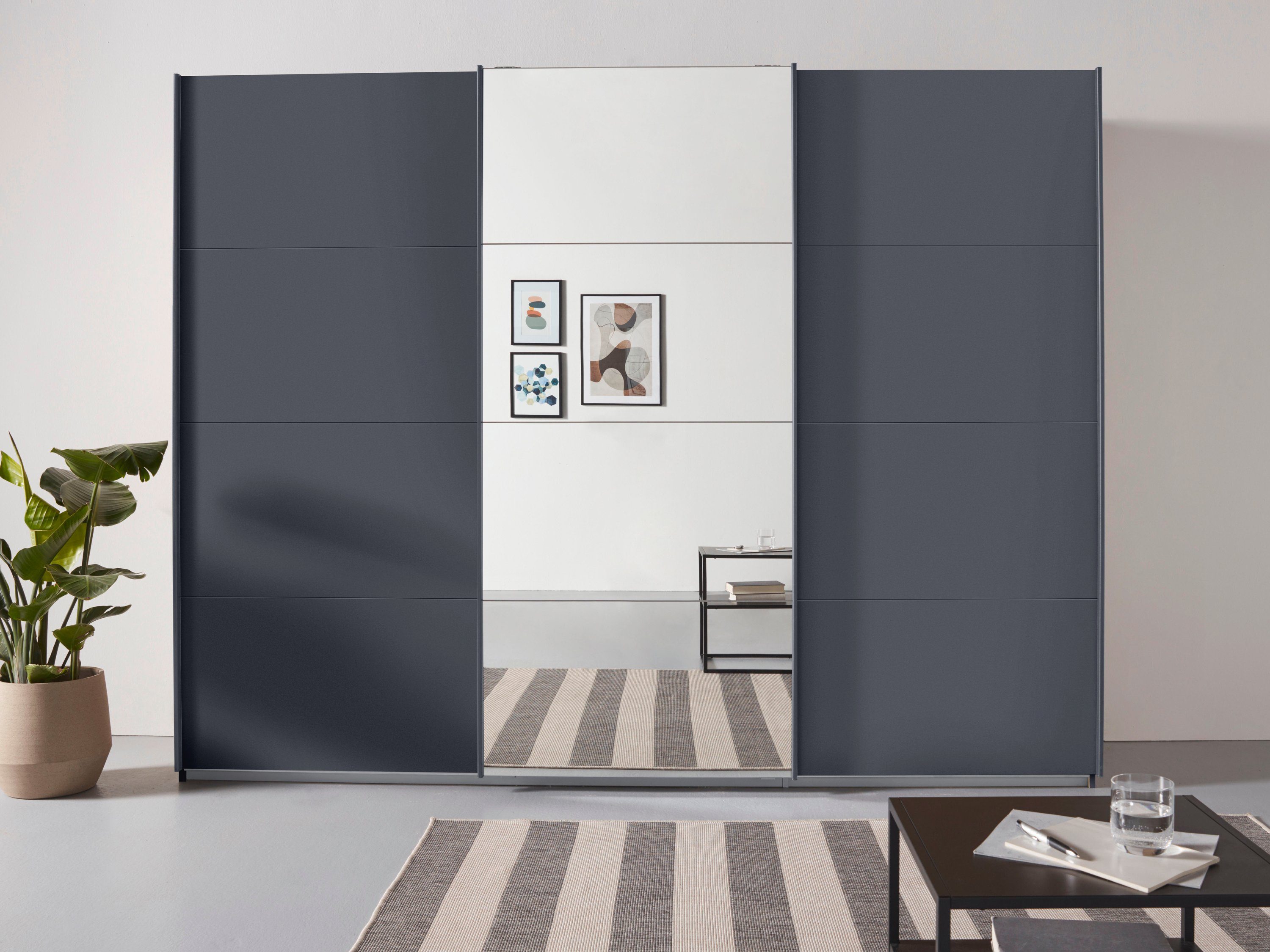 rauch Zweefdeurkast Kledingkast kast garderobe linnenkast kleedkamer OTELI met spiegel in het midden, in verschillende decor- en hoogglanskleuren