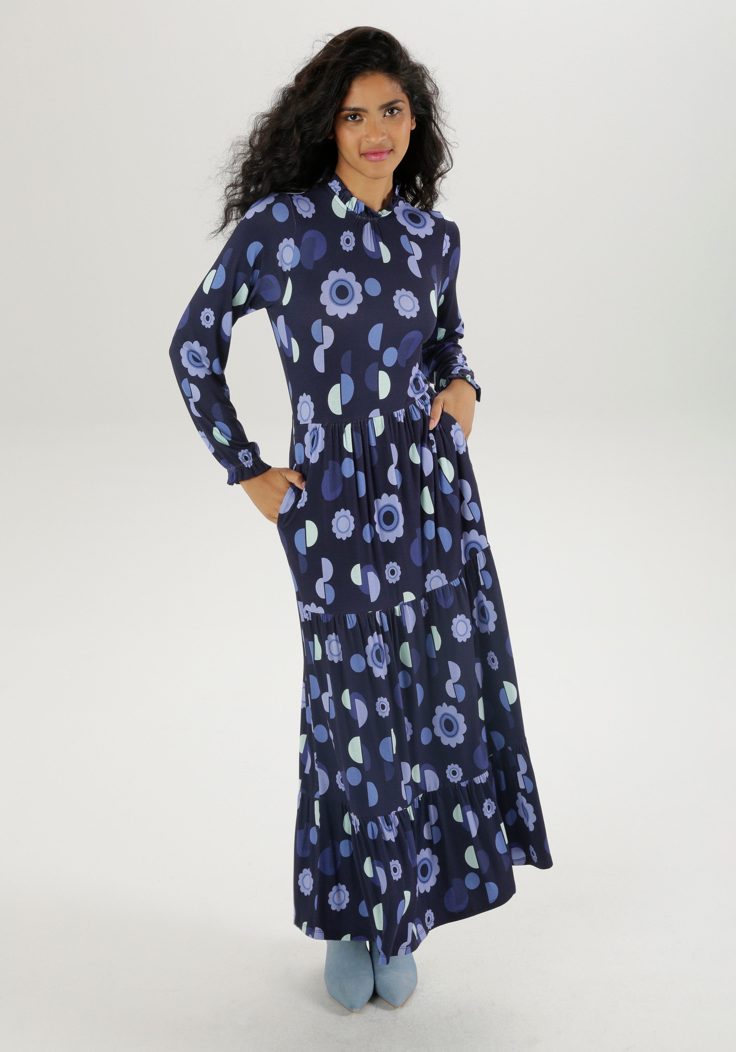 Aniston SELECTED Maxi-jurk met ruches en speelse print