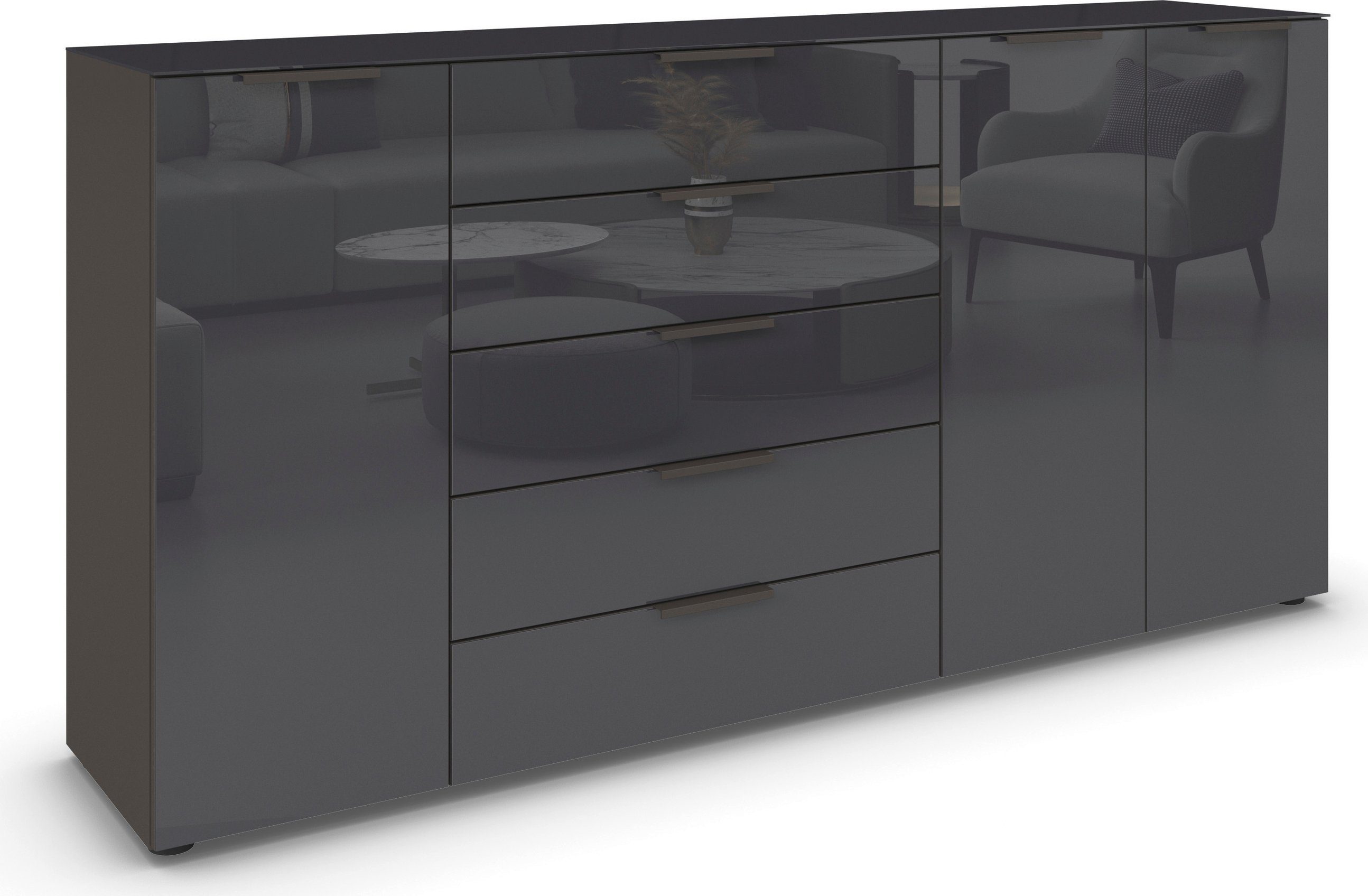 rauch Kast met laden en deuren Commode deurkast sideboard combikast FLIPP met glasfront 3-deurs, 5 lades, soft-close functie, bovenblad en glazen front
