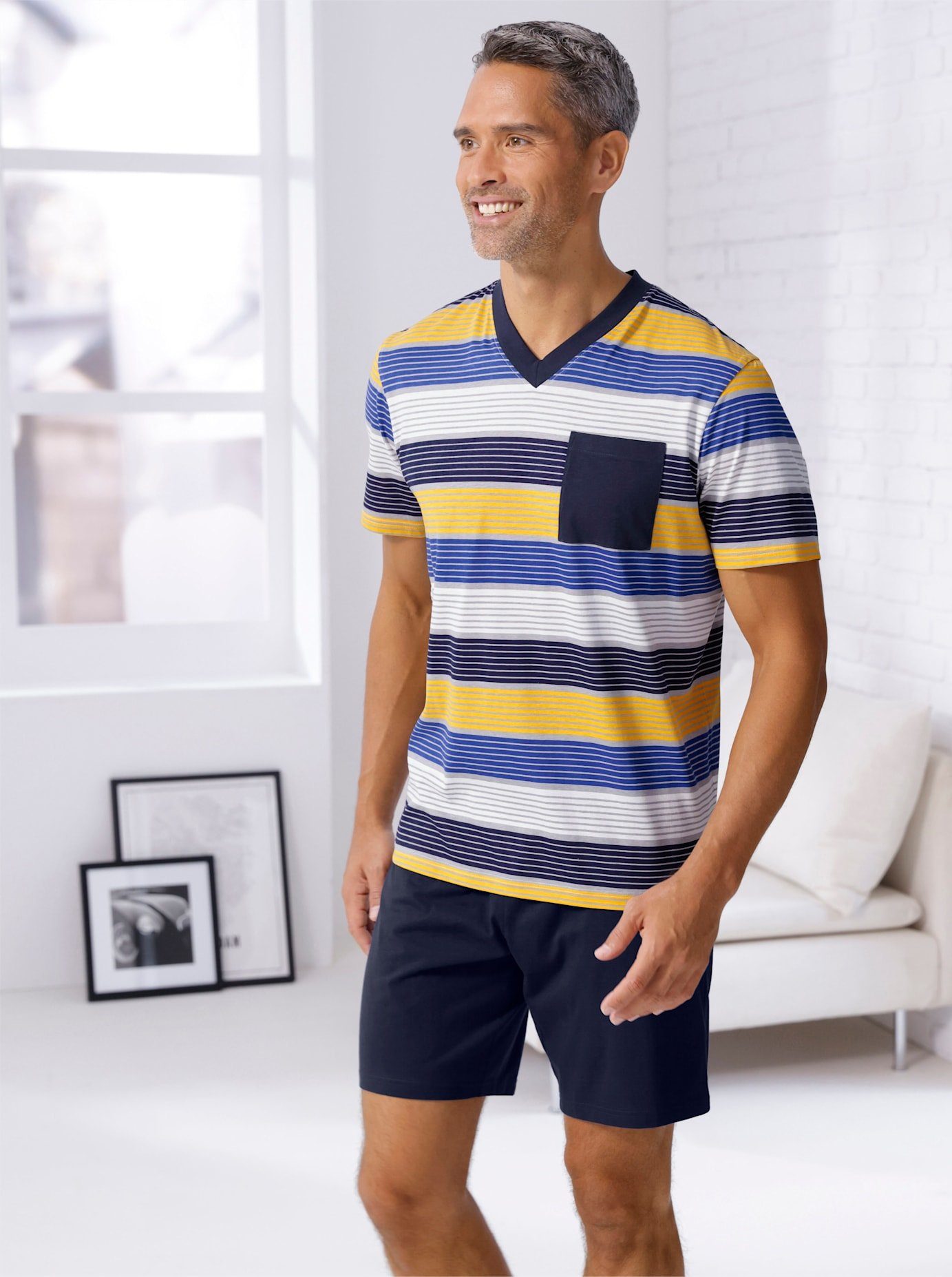 Kleur | Royalblauw/Oker gestreept |