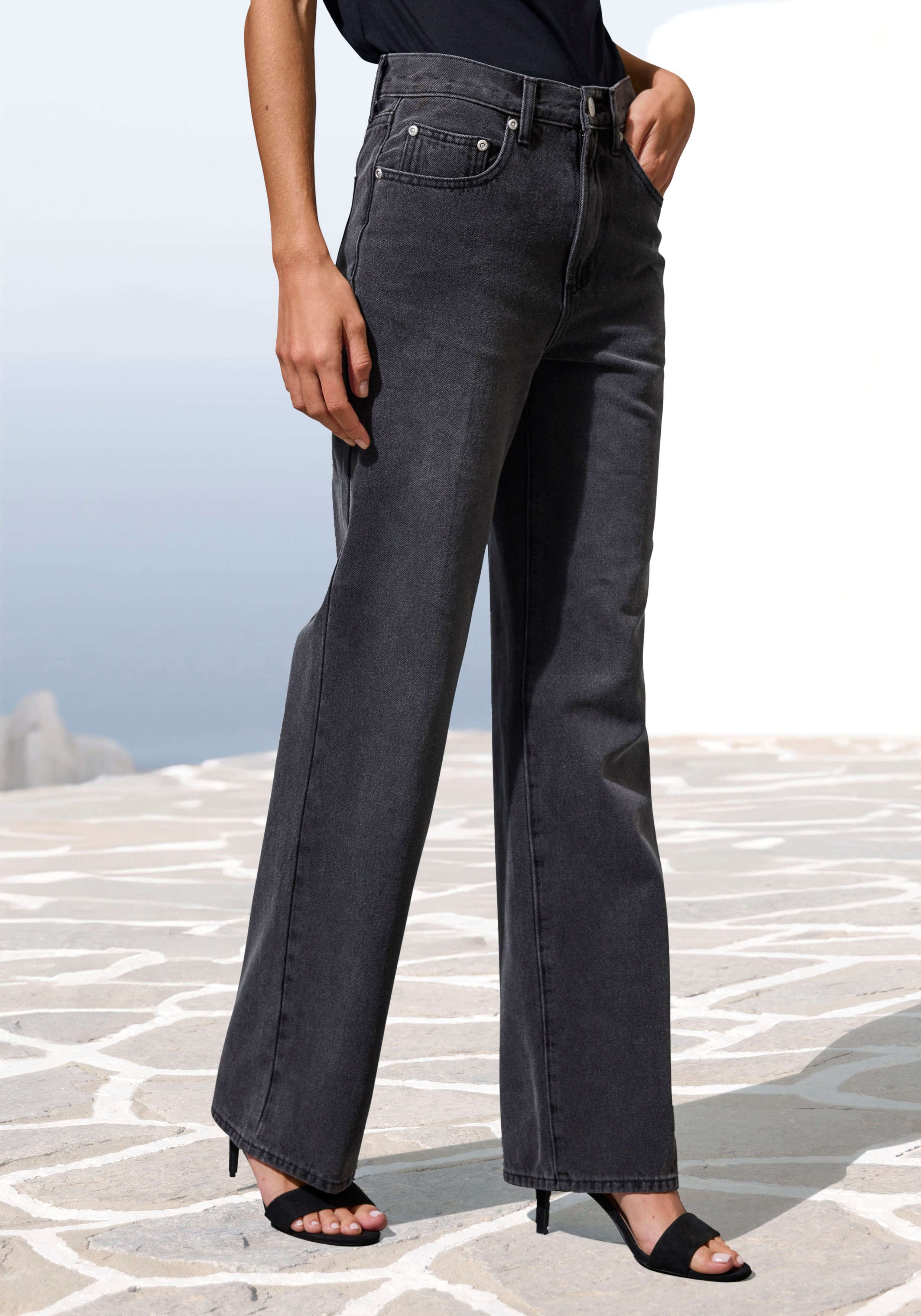 Lascana Wijde jeans met hoge taille en 5-pocketstijl, wide-leg jeans