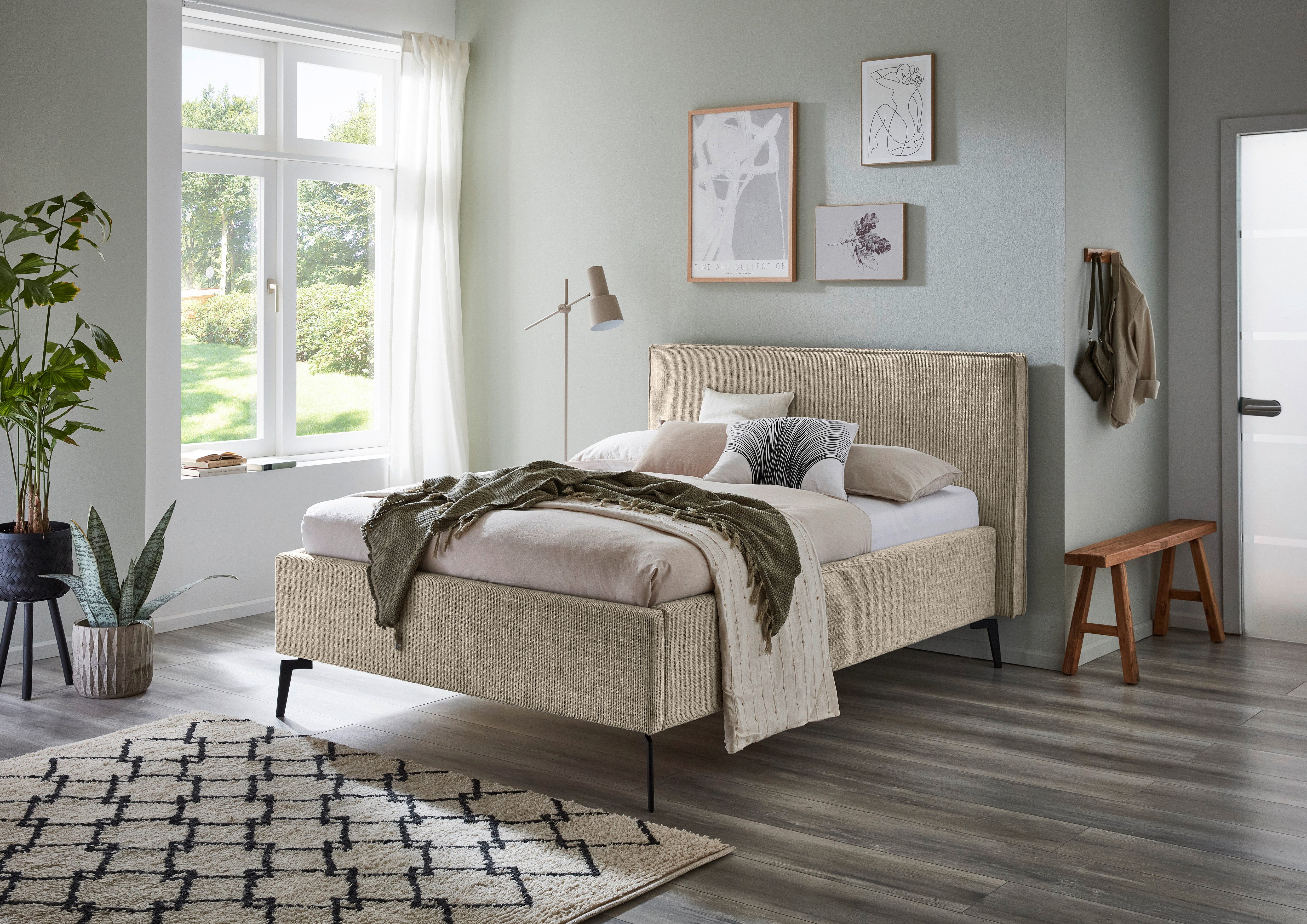 meise.möbel Gestoffeerd bed Riva II met zwarte metalen poten, naar keuze met bedkist