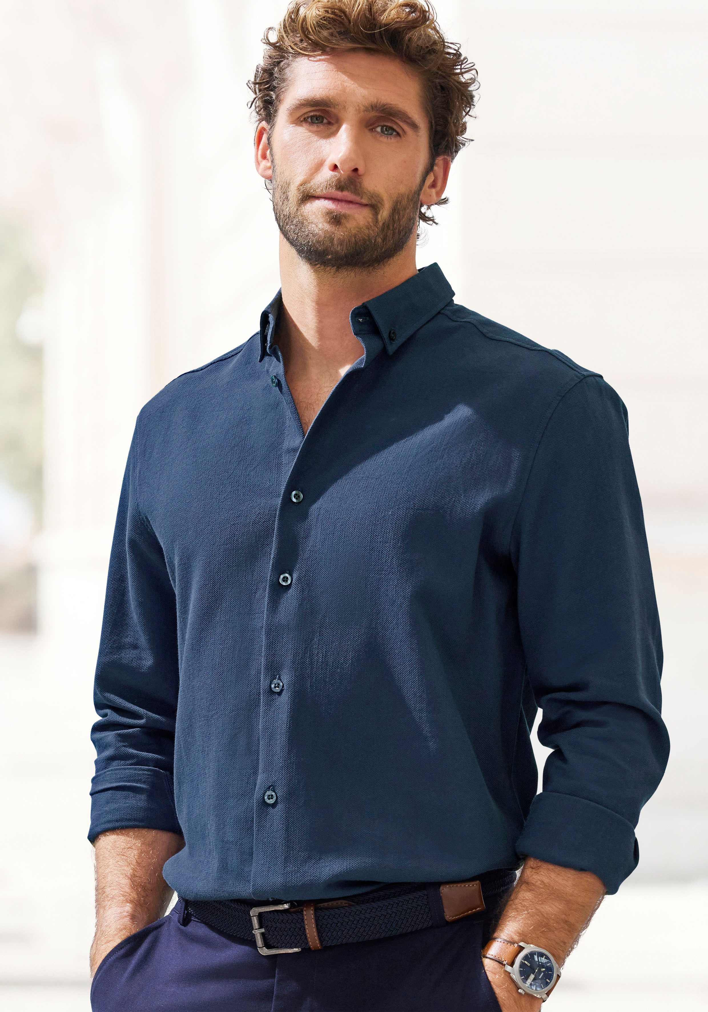 H.I.S Overhemd met lange mouwen Regular fit in hoogwaardige structuur-look