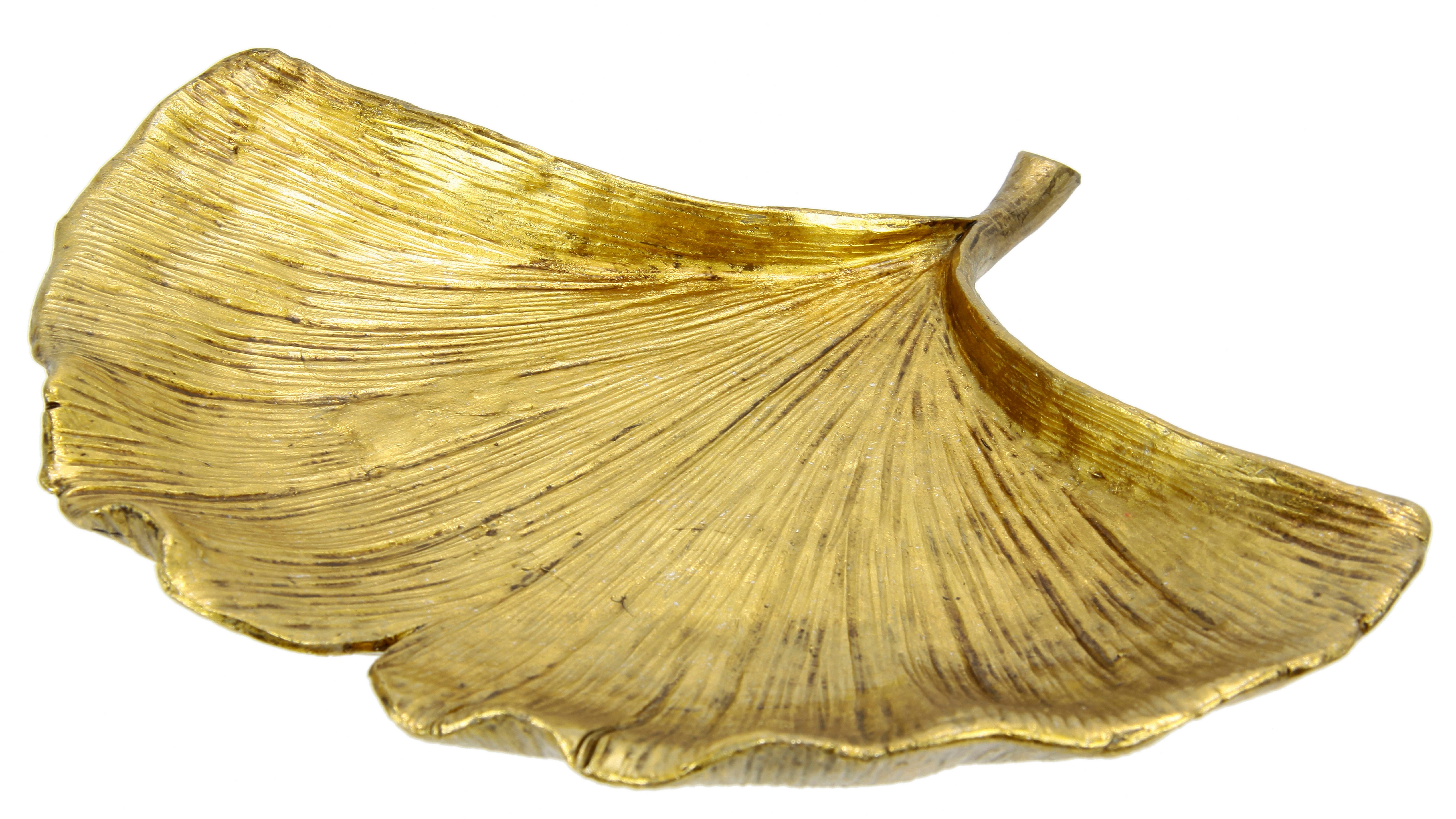 I.GE.A. Decoratieve Schaal ginkgo blad van polyresin Dienblad serveerblad tafelversiering decoratieschaal sieradenblad decoratie, goudkleur (1 stuk)