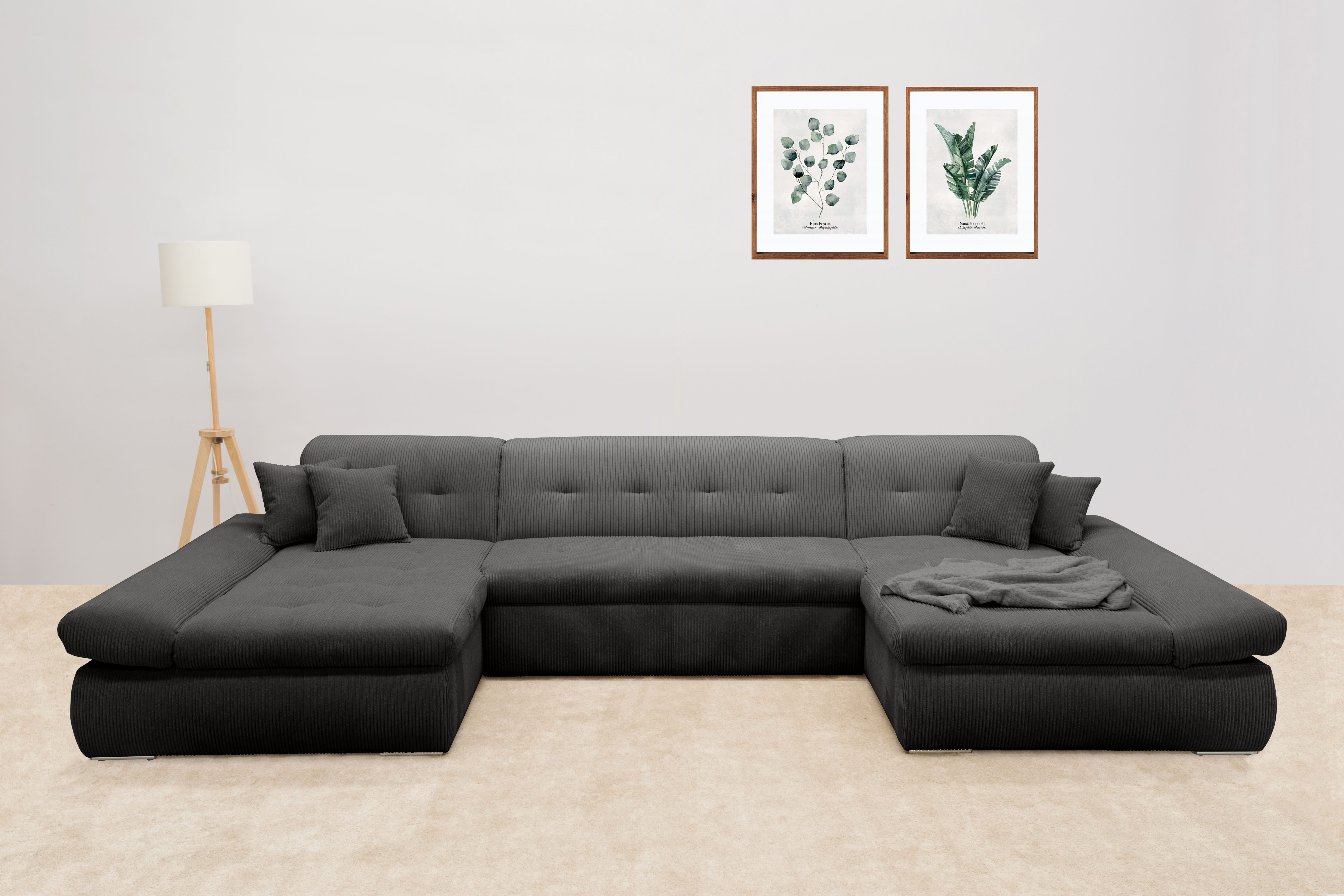 DOMO collection Zithoek Moric optioneel met slaapfunctie en armleuningsverstelling, XXL U-vorm, aan beide zijden met recamière, incl. sierkussen, cord-bekleding