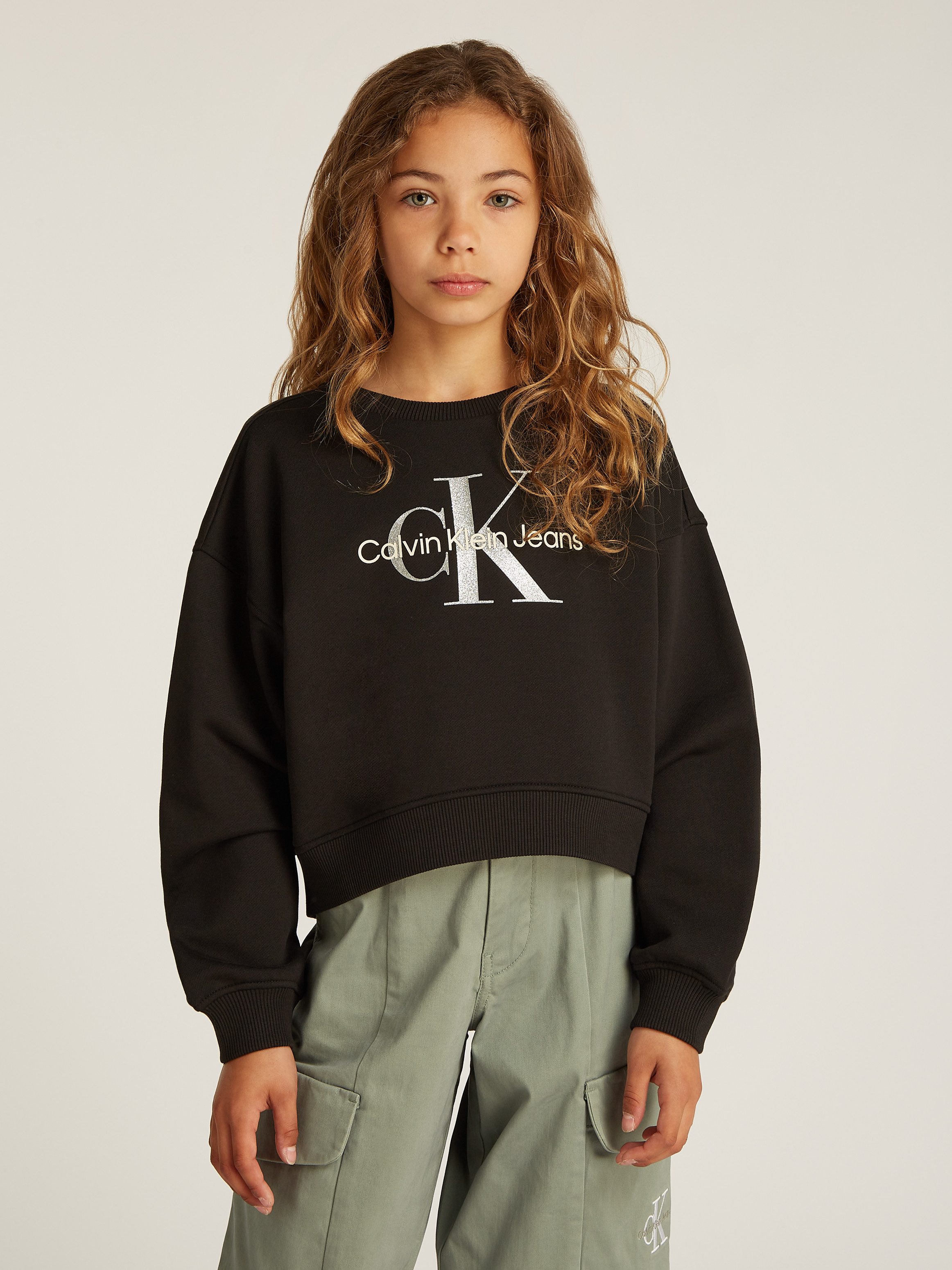 Calvin Klein Sweatshirt GLITTER MONOLOGO CN SWEATSHIRT voor kinderen tot 16 jaar met logo-opdruk