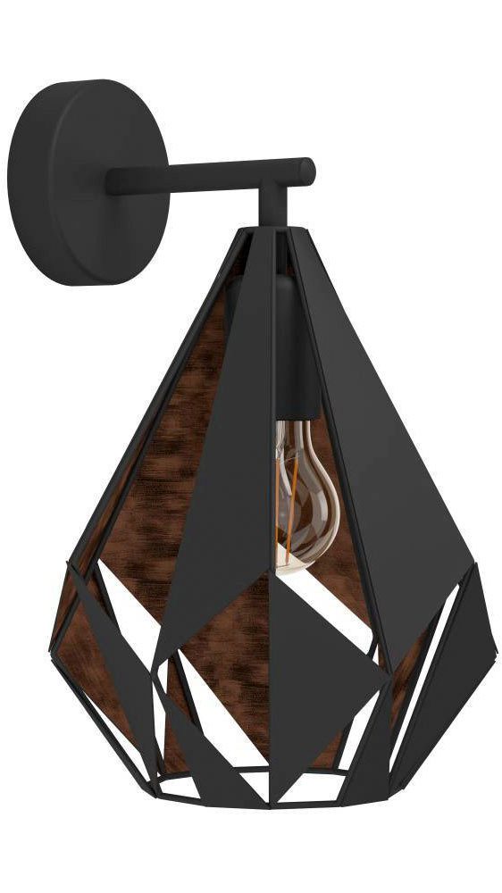 EGLO Wandlamp CARLTON 1 Vintage wandlamp, wandverlichting, metaal, zwart, koper, E27 (1 stuk)
