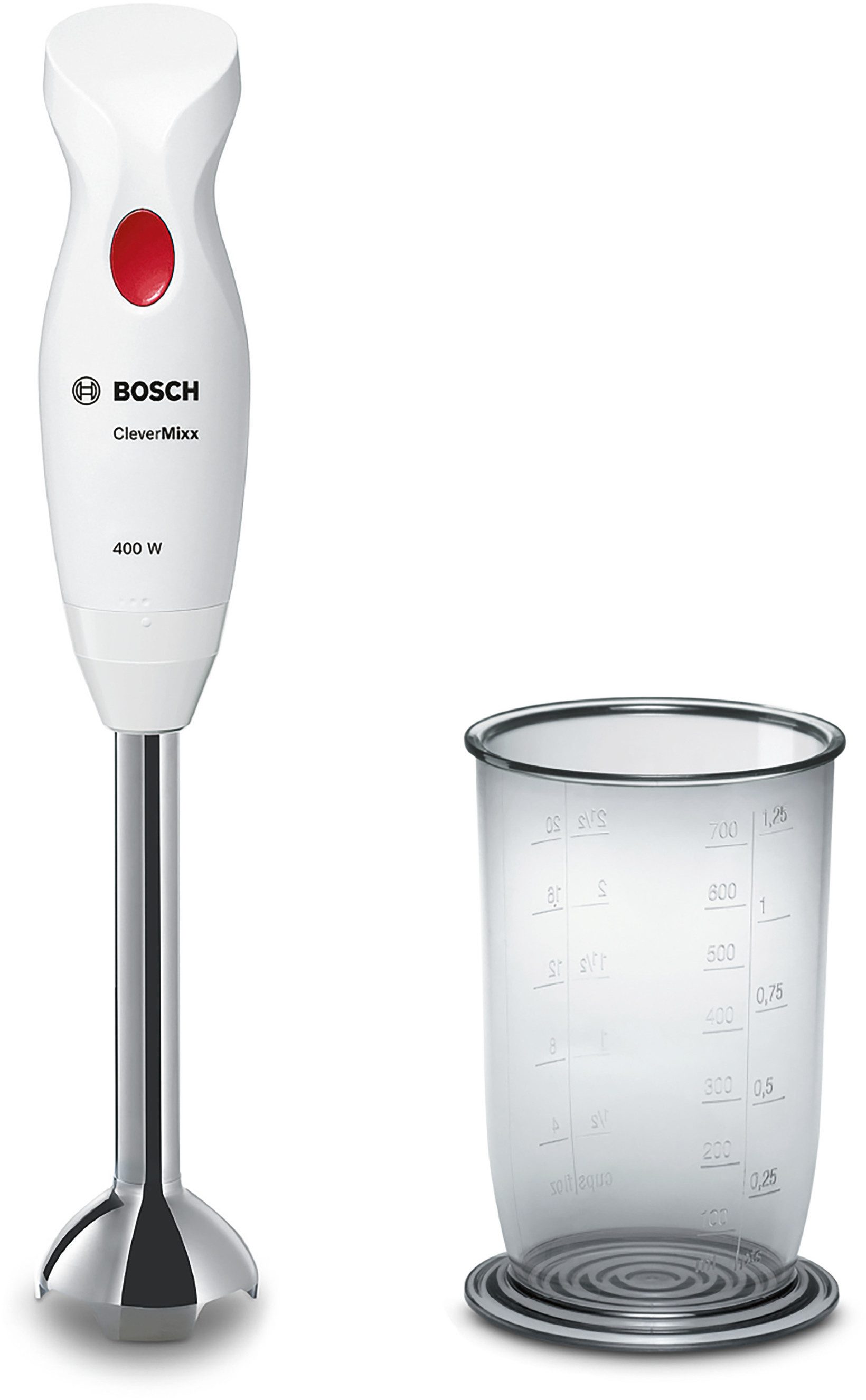 BOSCH Staafmixer CleverMixx MSM24100, mixbeker, ergonomische grip, Made in Europe, wit/rood