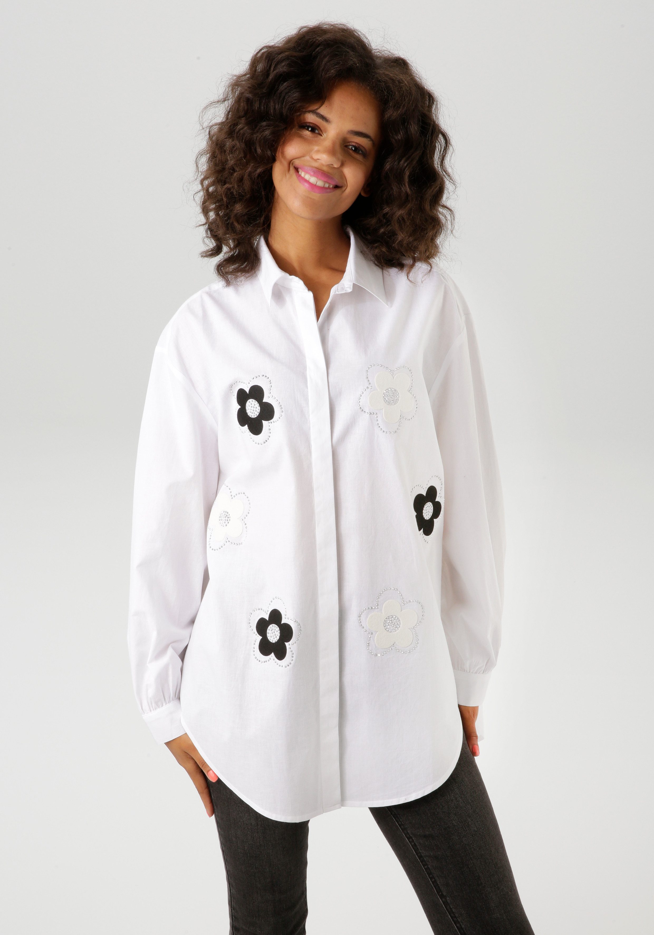 Aniston CASUAL Overhemdblouse met glinsterende steentjes versierde bloemapplicaties