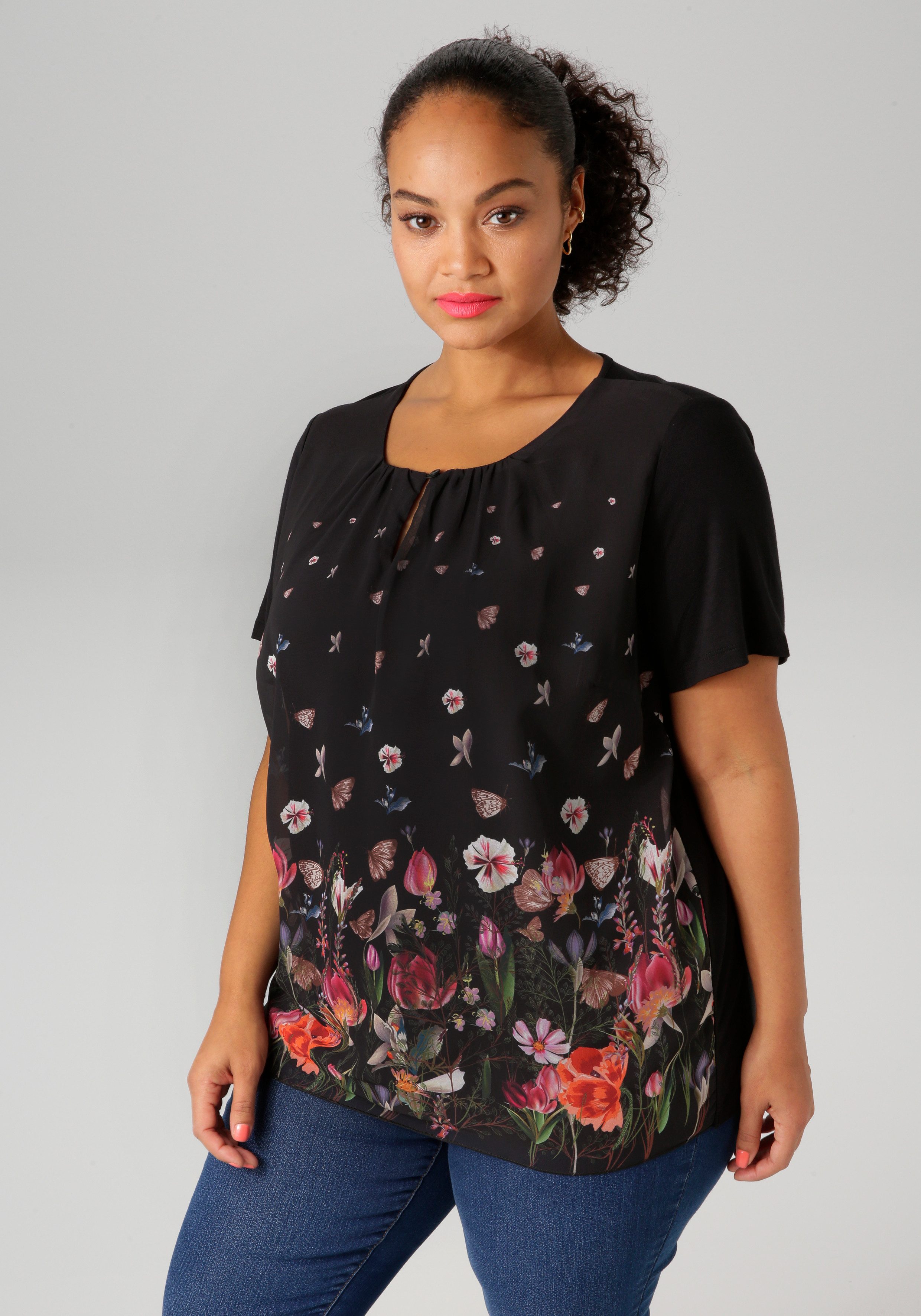 Aniston PLUS Shirtblouse met kleurrijke bloemenweide bedrukt