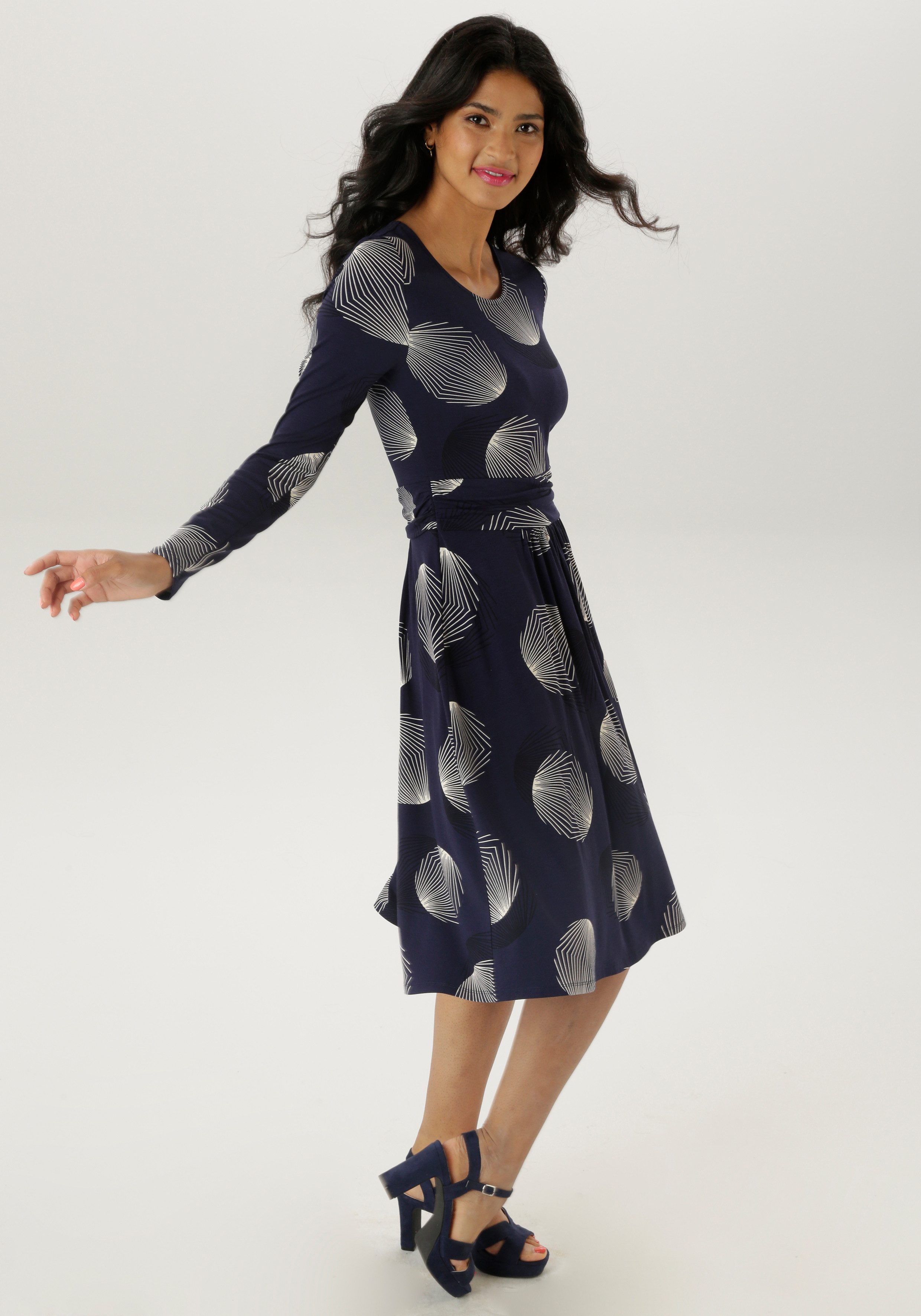 Aniston SELECTED Jerseyjurk met figuurnauwkeurige rimpelingen in de taille