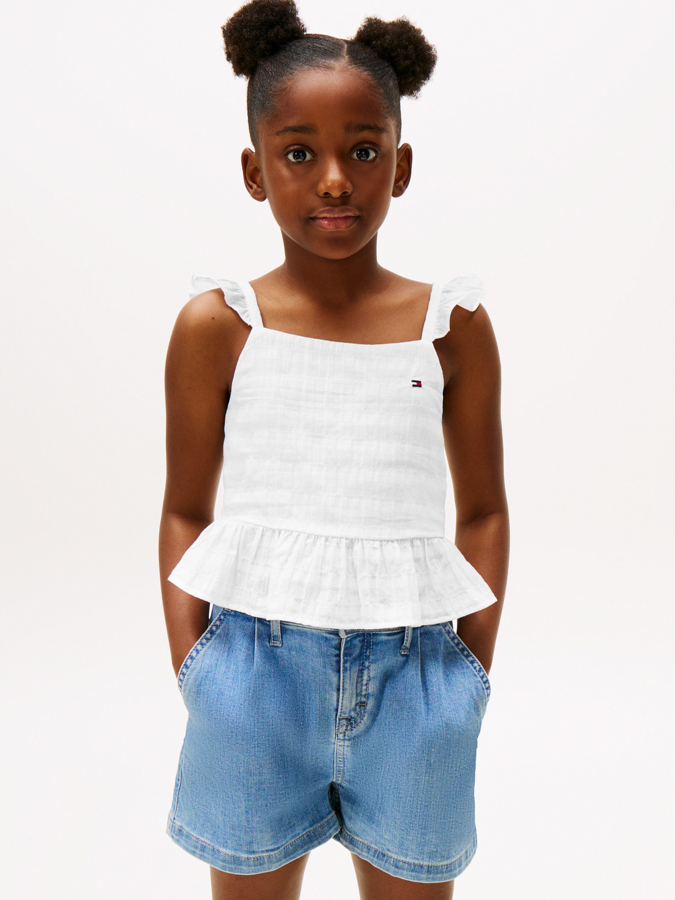Tommy Hilfiger Top TEXTURED COTTON TOP SLVLS met borduursel, met ruches