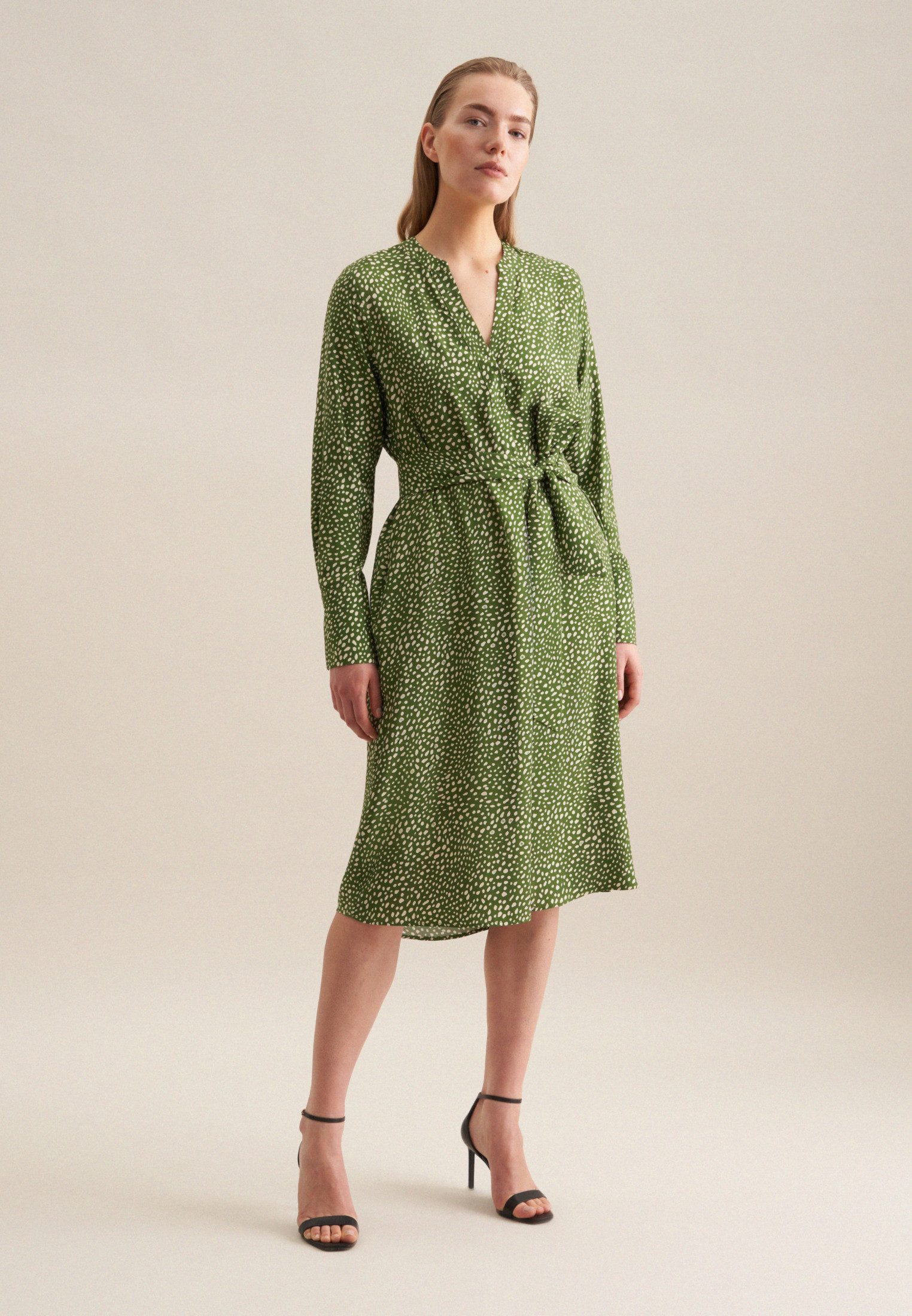 seidensticker Zomerjurk Zwarte roos Lange mouwen kraag print