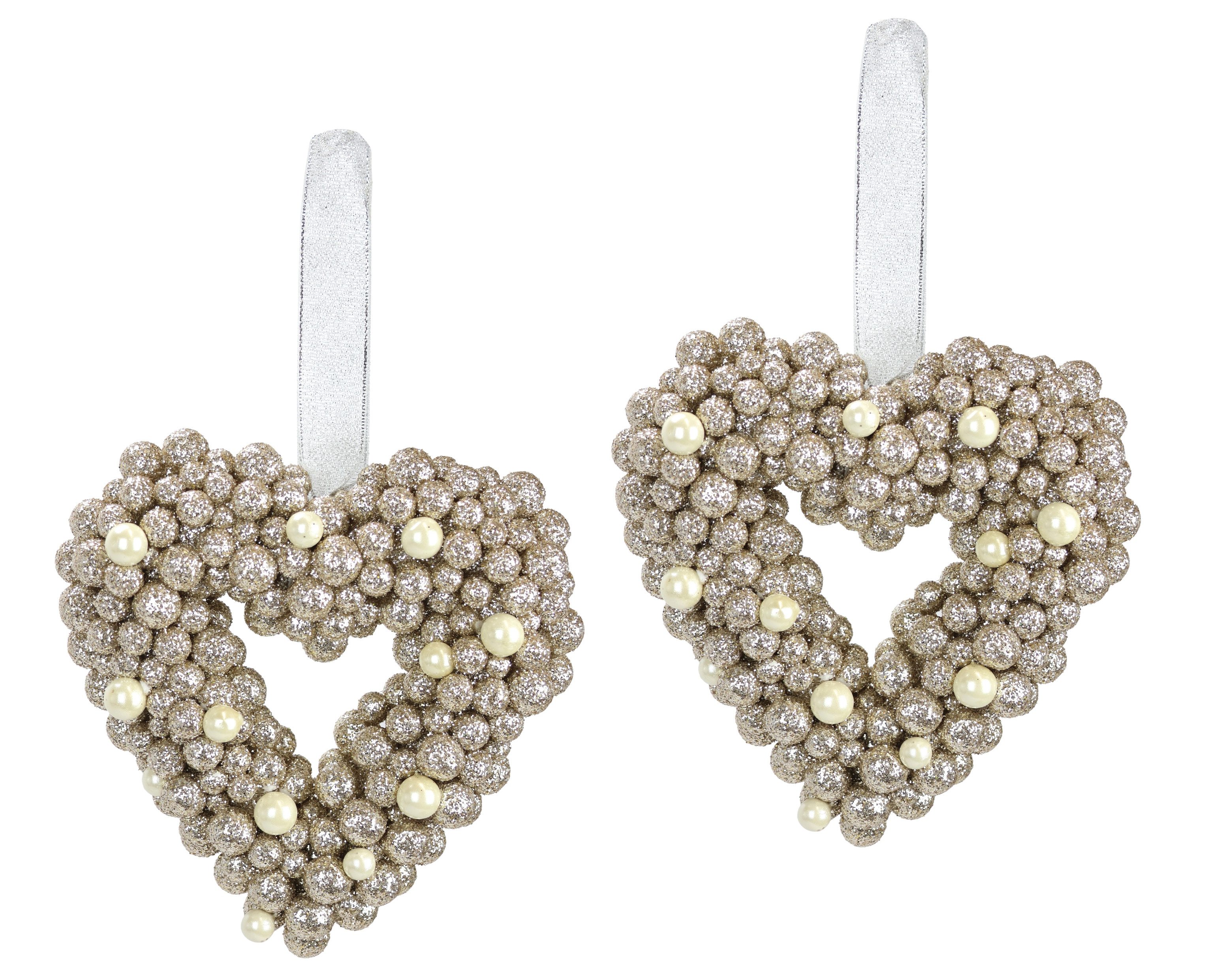 I.GE.A. Kunstkrans Parel hart om op te hangen set van 2 glanzend decoratief hart kerstdecoratie deurkrans trouwdecoratie (2 stuks)