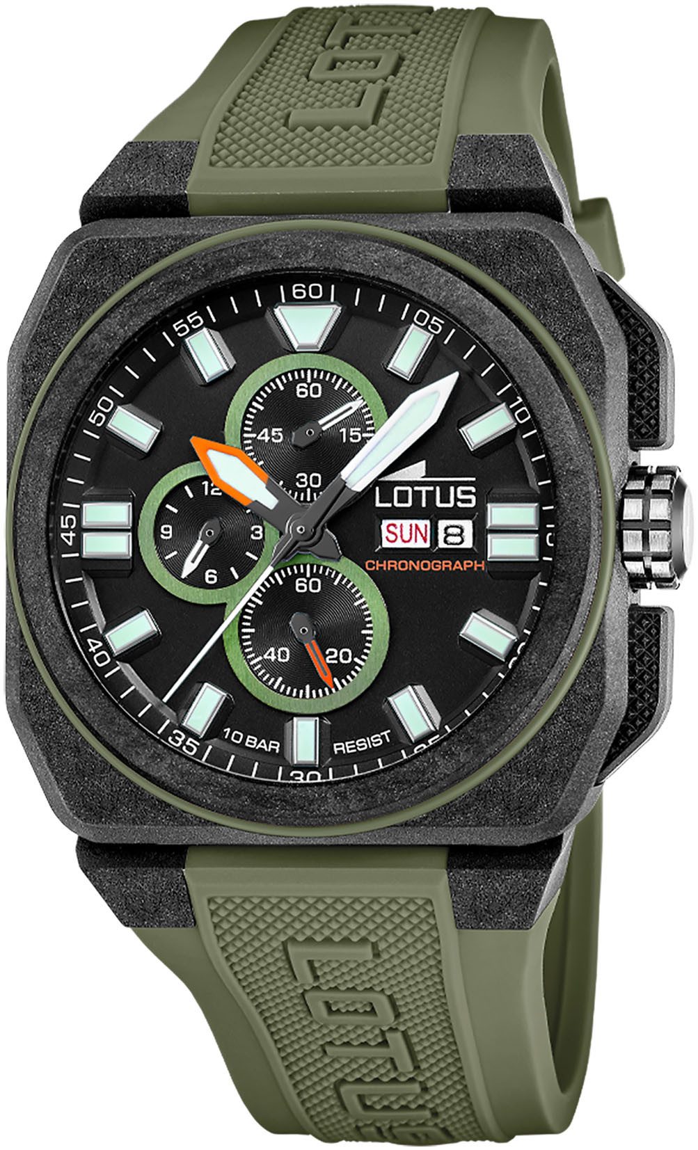 Lotus Chronograaf Quartz horloge, polshorloge, herenhorloge, rubberen band, datum, stopwatchfunctie