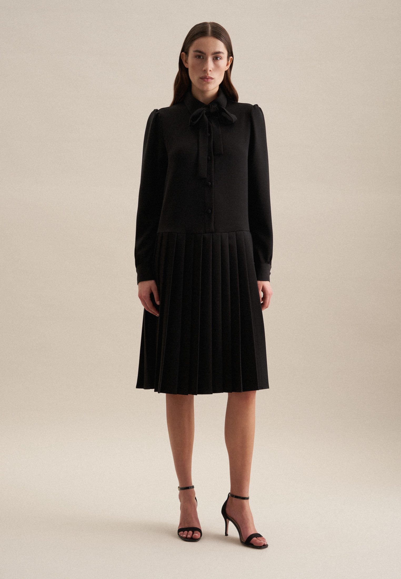 seidensticker Zomerjurk Zwarte roos Lange mouwen kraag uni