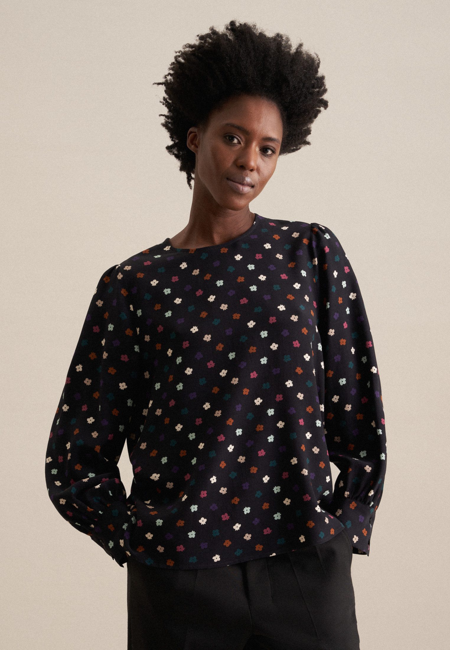 seidensticker Shirtblouse Zwarte roos Lange mouwen ronde hals print
