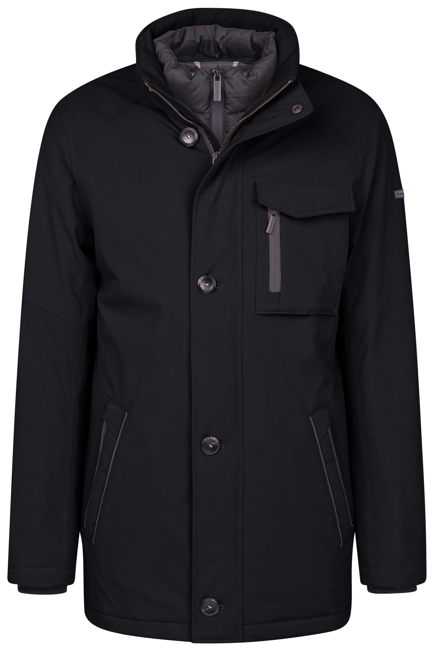 - Met moderne opstaande kraag