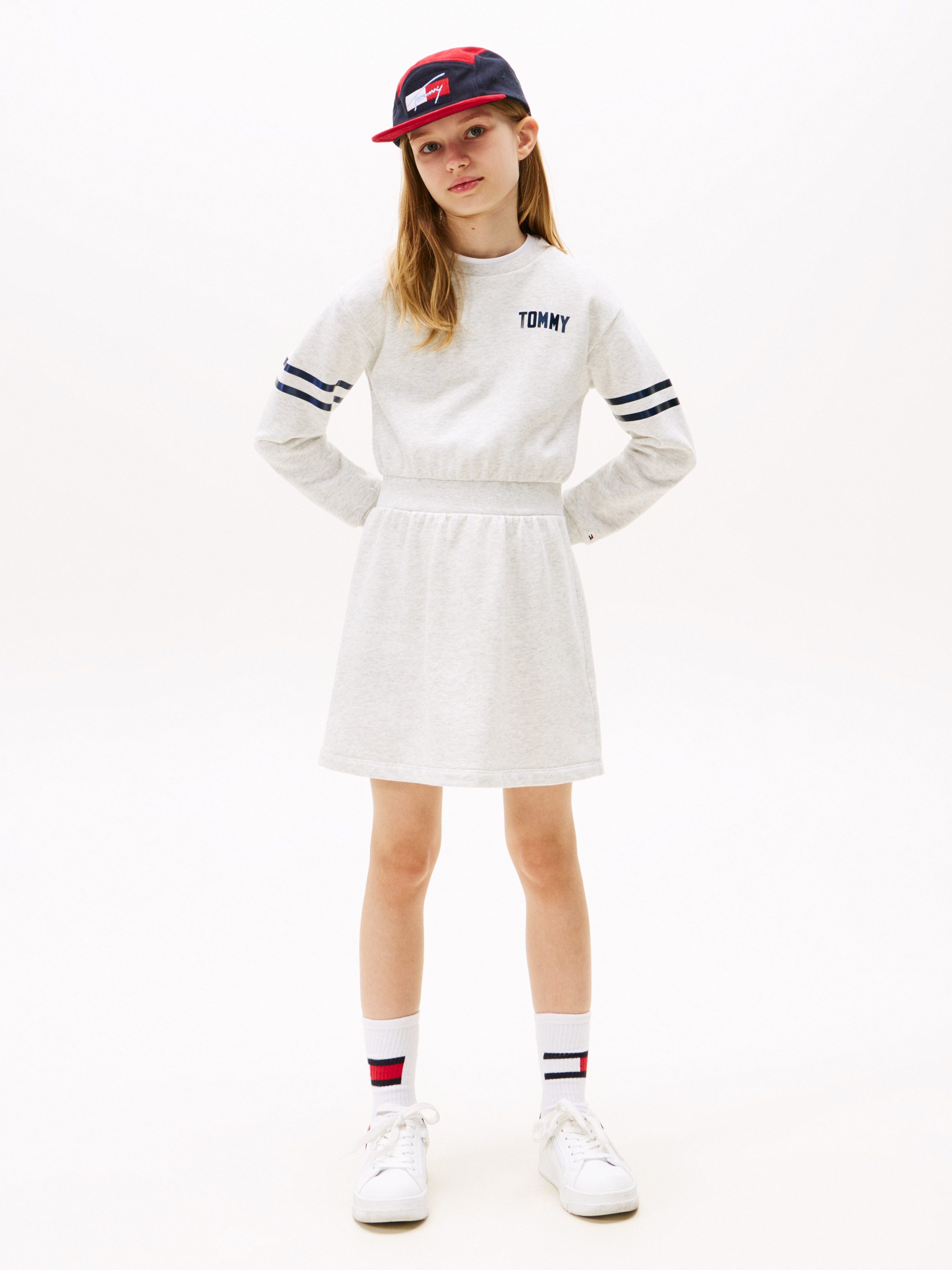 Tommy Hilfiger Sweatjurk SATIN APPLIQUE HWK DRESS LS voor kinderen tot 16 jaar, met satijnen applicatie