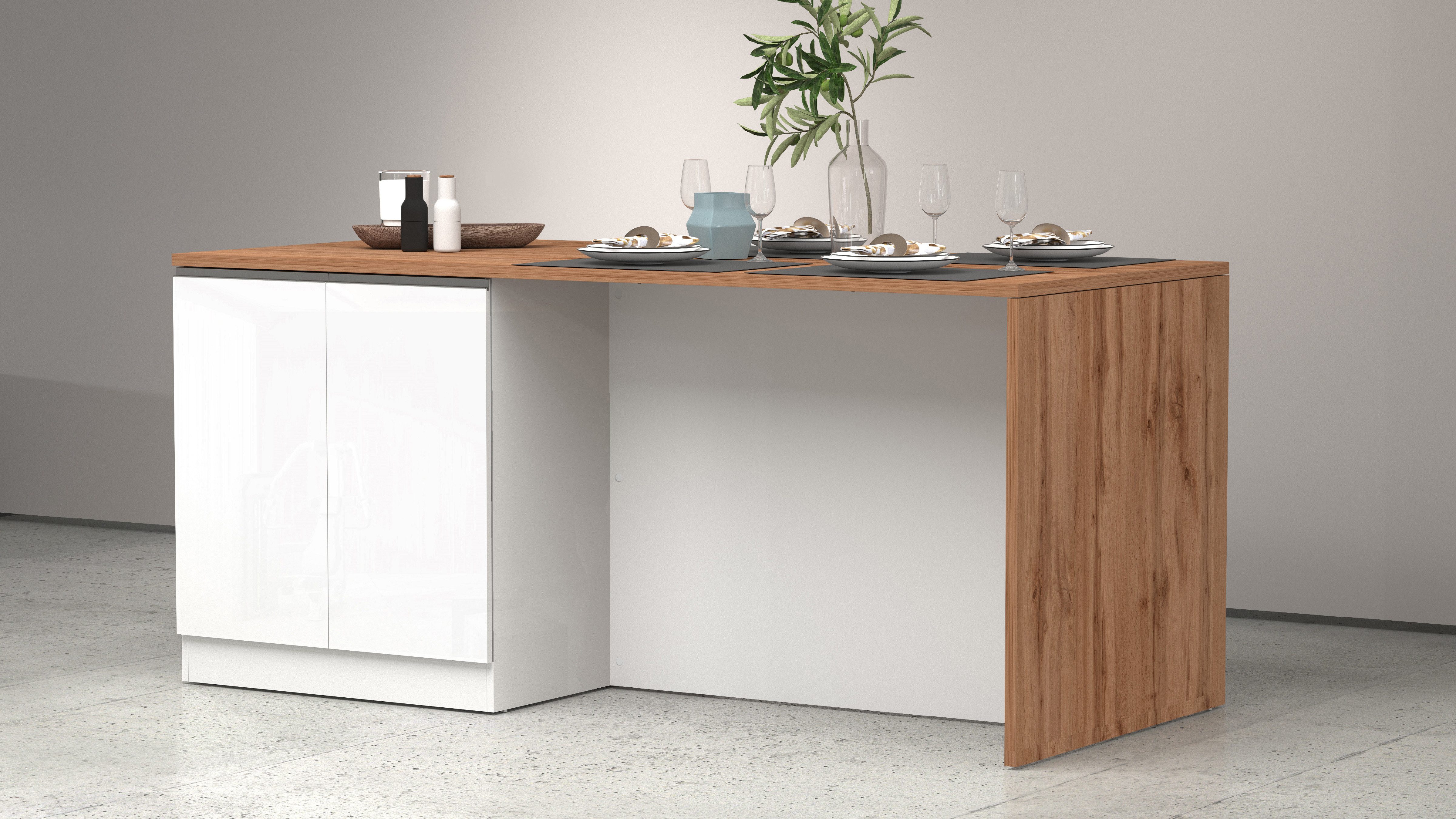 Kochstation Kookeiland Sole, kookeiland, keukenwerkblok, eilandkeuken, werk-eiland Breedte 200 cm met 4 deuren, 4 vakken, werkblad, aluminium handgreep