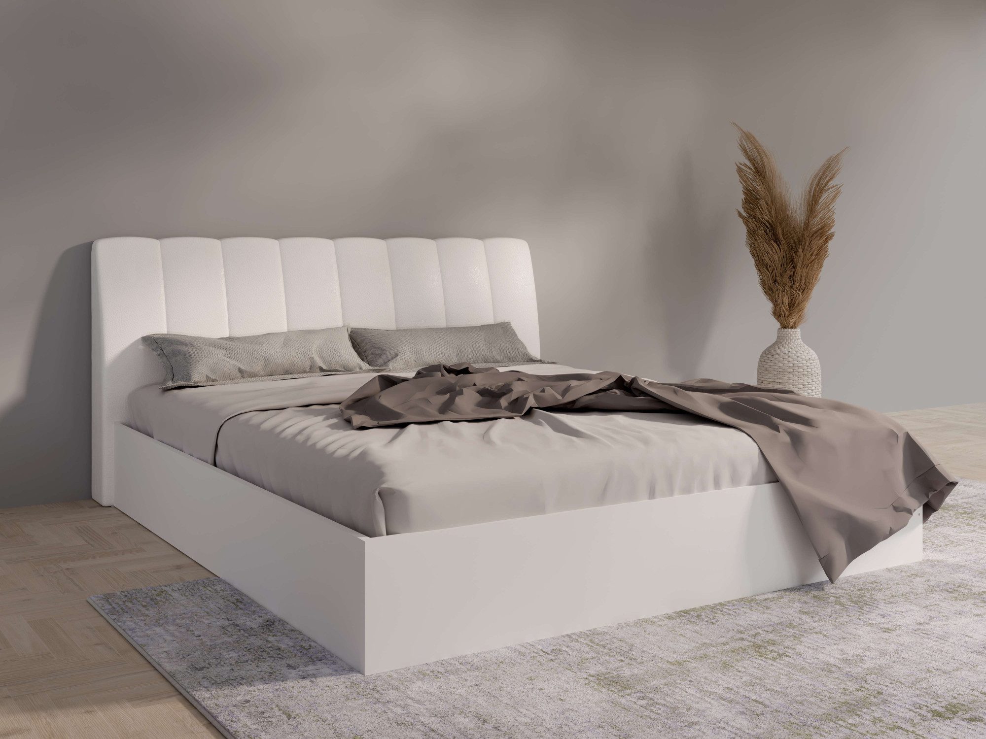 - Een klassiek wit bed geeft de slaapkamer elegantie.