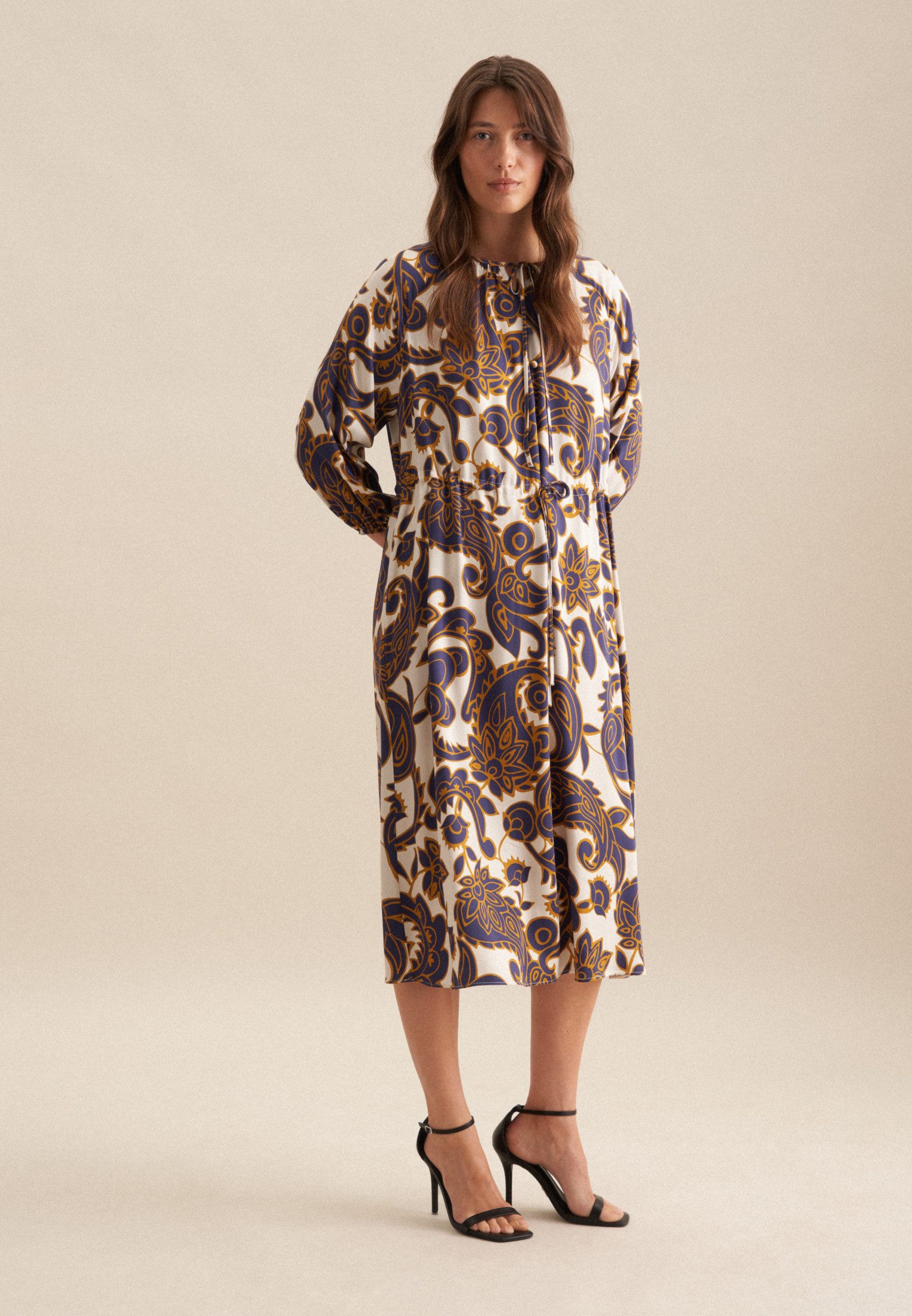 seidensticker Zomerjurk Zwarte roos 7/8-arm ronde hals paisleypatroon
