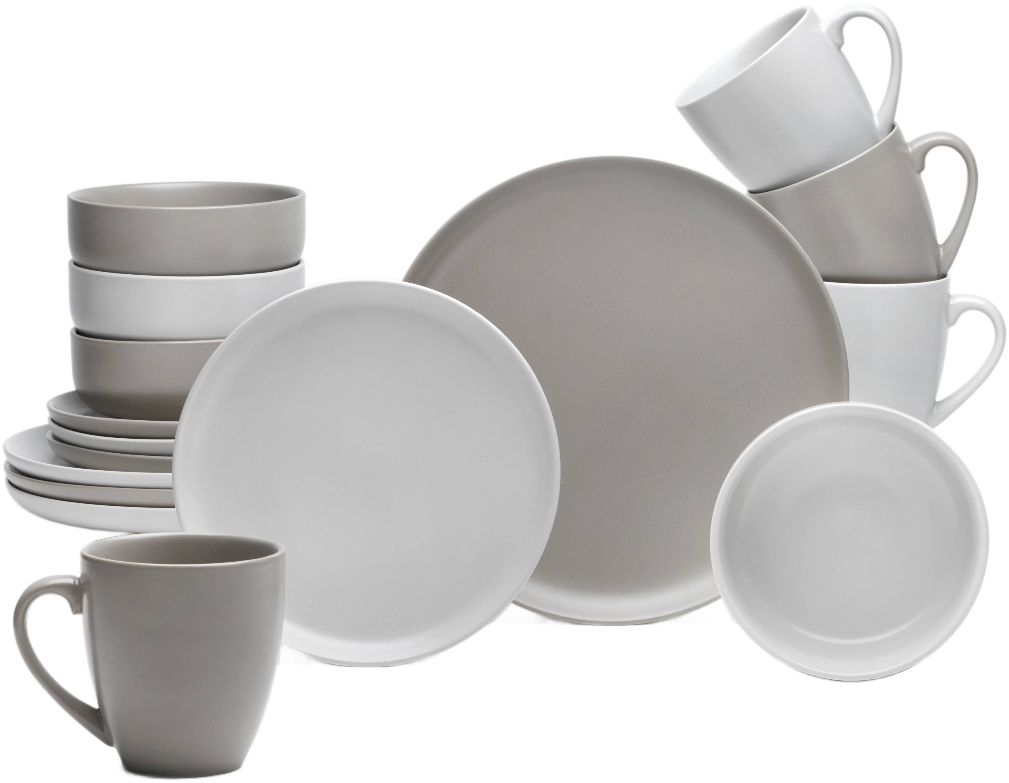 van Well Combi-servies Servies-set Stockholm, 16-delig rond, zand/taupe, vaatwasser- en magnetronbestendig (set, 16-delig)