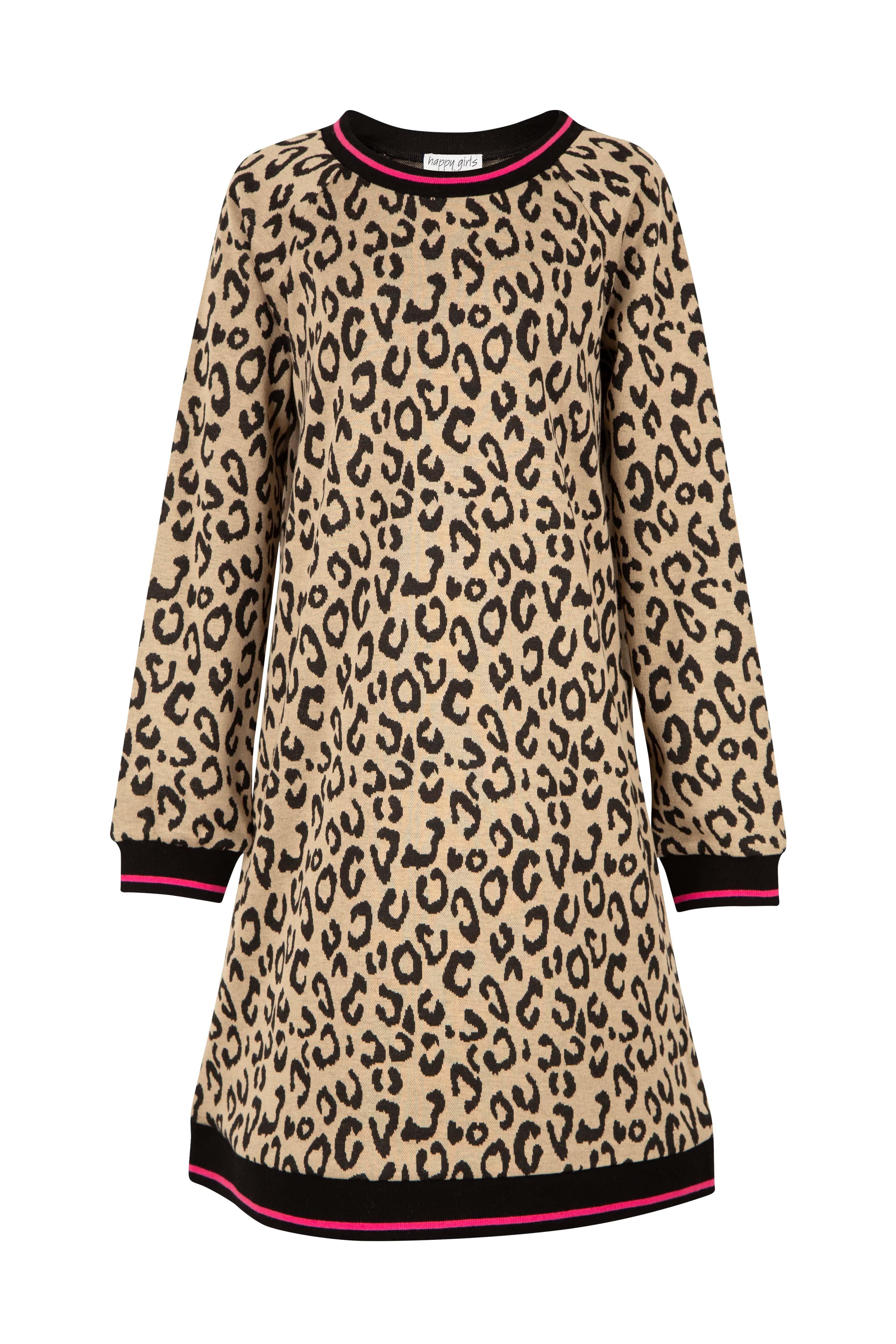 happy girls Gebreide jurk in geweldig leo-allovermotief met contrasterende gebreide manchetten